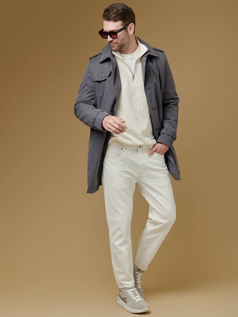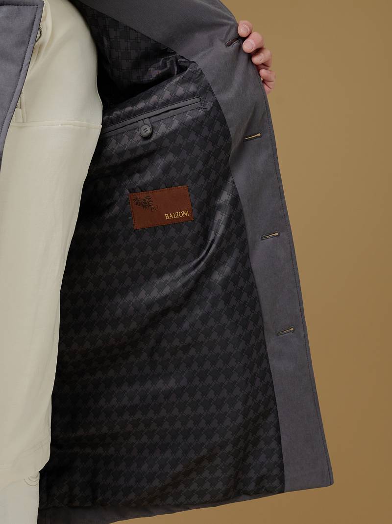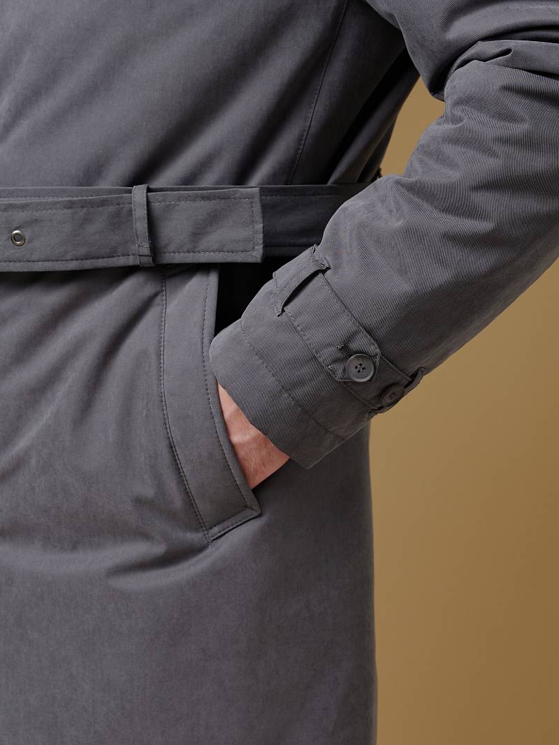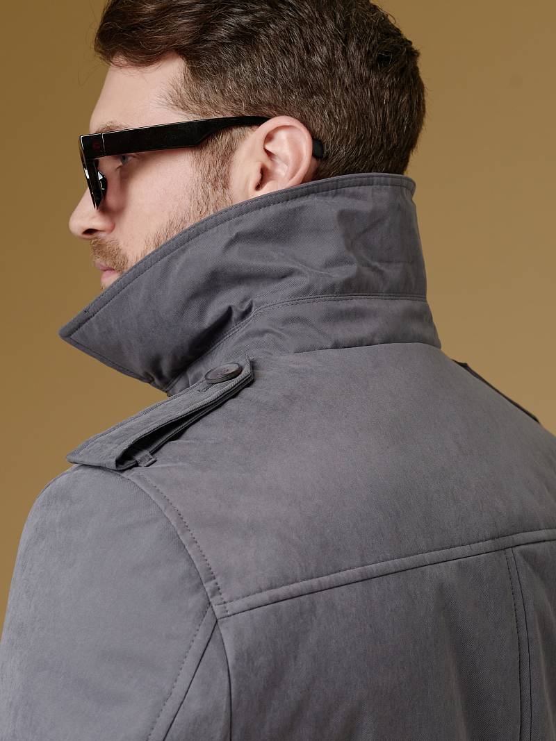 Плащ- тренч мужской утепленный однобортный с лацканами, с застежкой доверху на пуговицы, Изделие из курточной ткани с мембраной TPU. Современная одежда из материалов с TPU покрытием отличается отличной дышащей способностью, что в сочетании с водонепроницаемостью и защитой от ветра обеспечивает комфорт пользователю. Правая полочка с отлетной кокеткой. На полочках - боковые наклонные карманы с листочкой на скрытых магнитах. Спинка с притачной кокеткой и шлицей в среднем шве. Рукав втачной двухшовный, в нижней части рукава в шлевках закреплена пата, регулируемая двумя пуговицами. Воротник - высокий отложной со стойкой и крючком необходим для защиты от ветра и будет шиком - его немного приподнять. Погоны на пуговицах - самая классическая деталь тренча. Плащ по талии регулируется ремнем с пряжкой, пряжка позволяет быстро затянуть пояс в непогоду. На подкладке два внутренних кармана на пуговицах. Длина спинки для роста 176 - 91см. Ткань верха: 55% нейлон, 45% хлопок. Подкладка: 100%полиэстер. Утеплитель: термоплюс