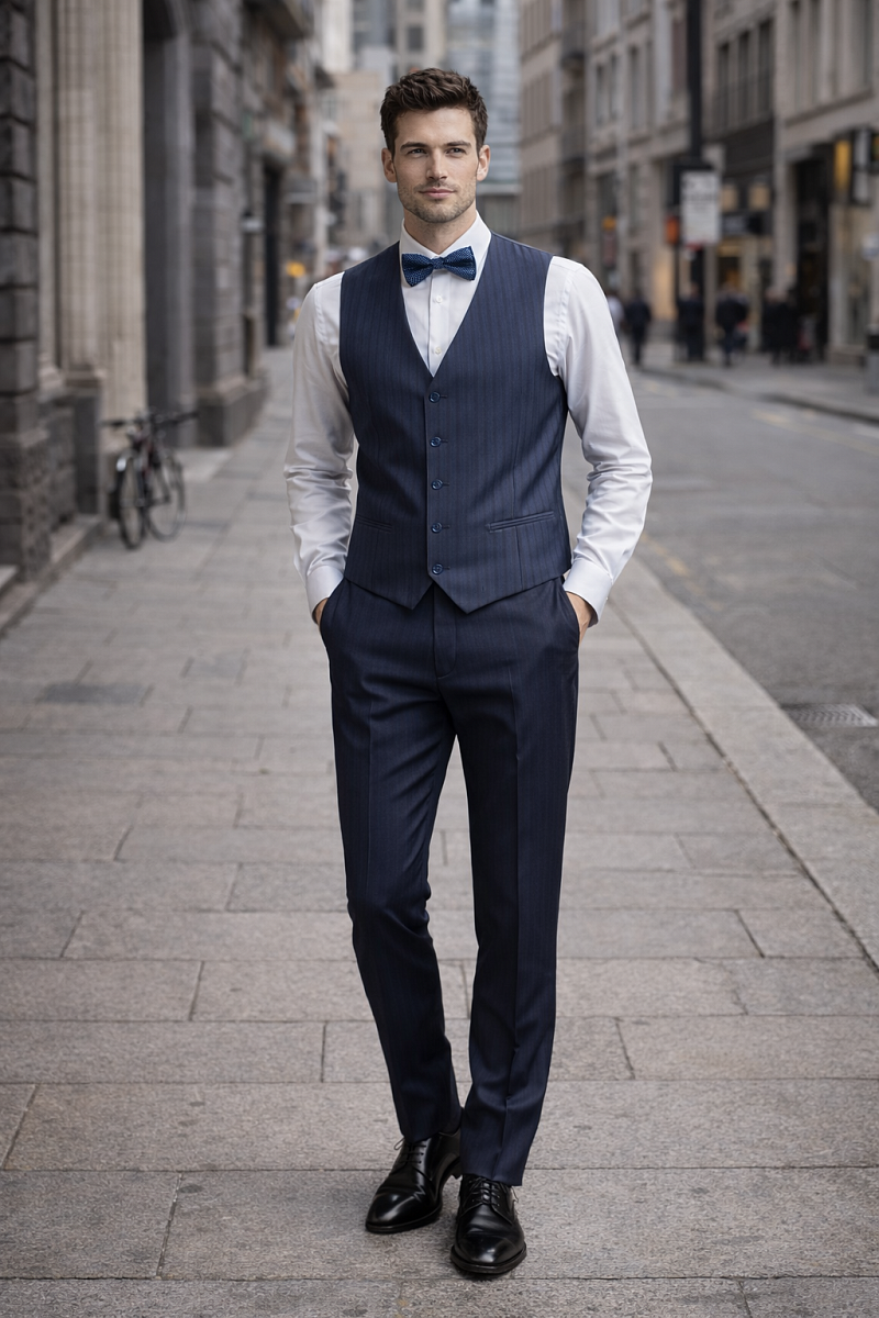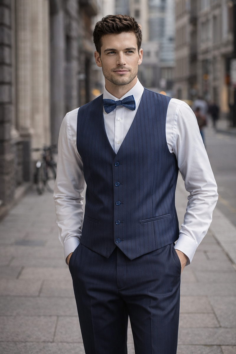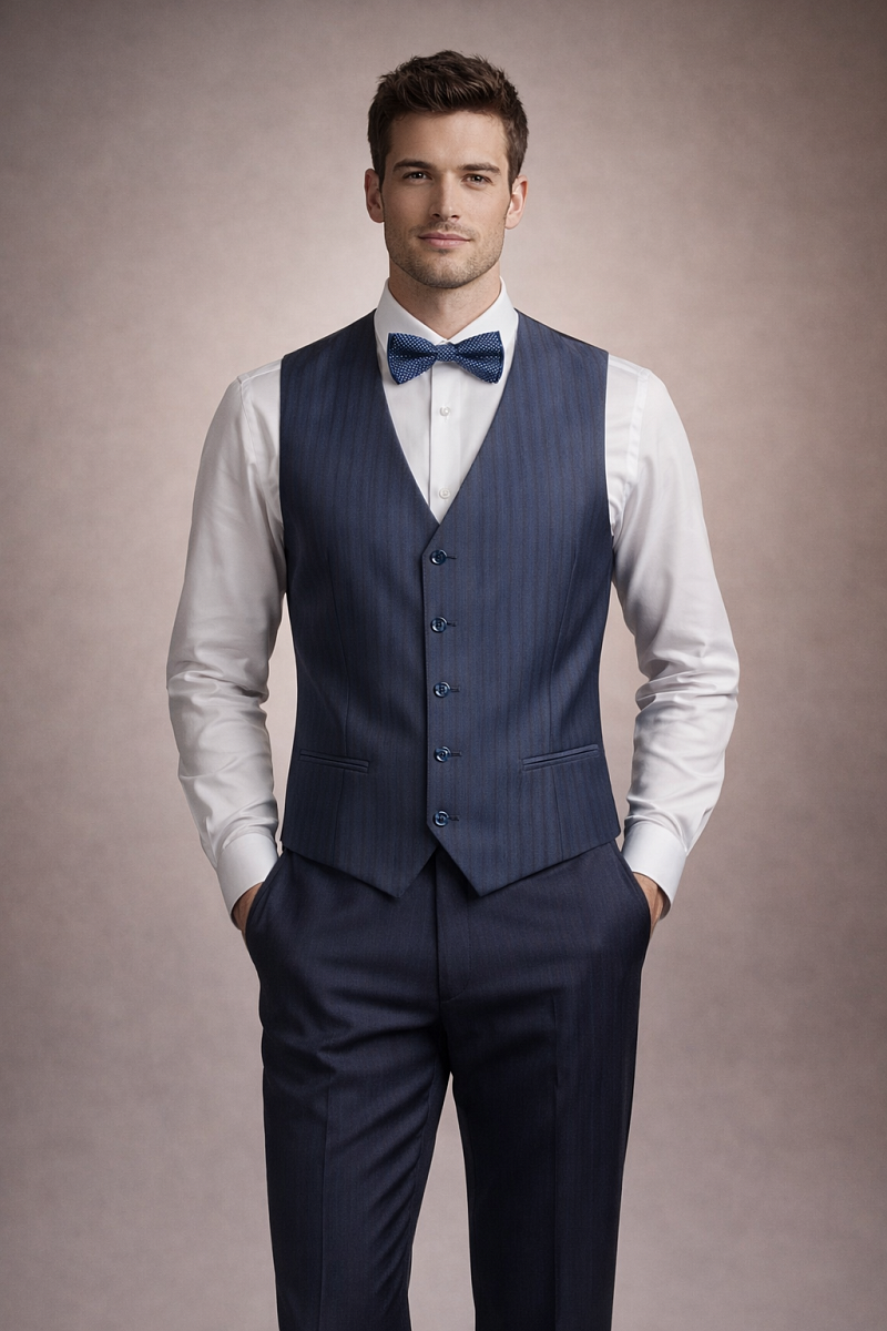 Slim fit. Жилет мужской классический, с двумя боковыми карманами, с обтачками проймы и горловины спинки.