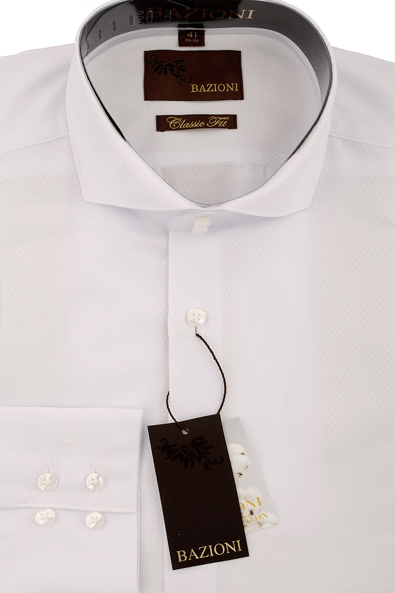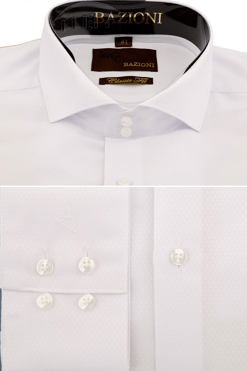 Classic fit, Воротник-акула с высокой стойкой на две пуговицы, манжет прямой с двумя вертикально расположенными пуговицами, застежка - без отделки.