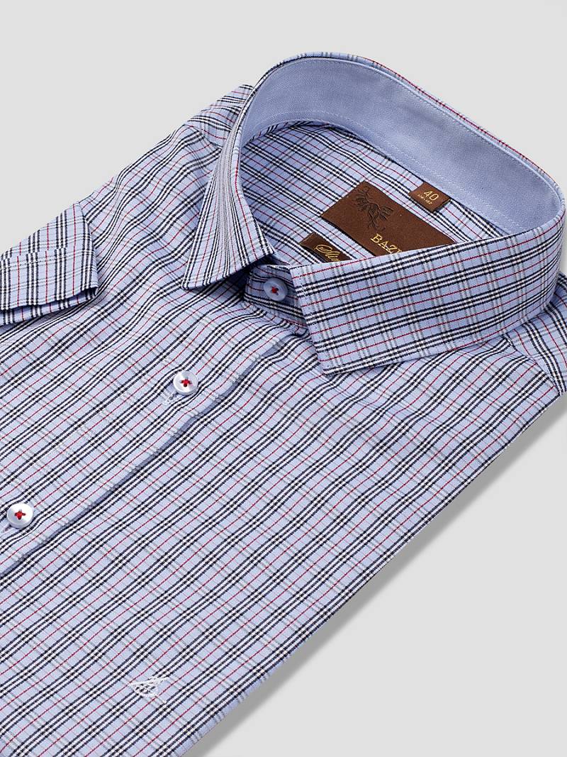 Slim fit, Воротник-узкий, короткий рукав на ложном манжете. ложная планка по борту. отделка - внутренняя стойка. на выпуск
