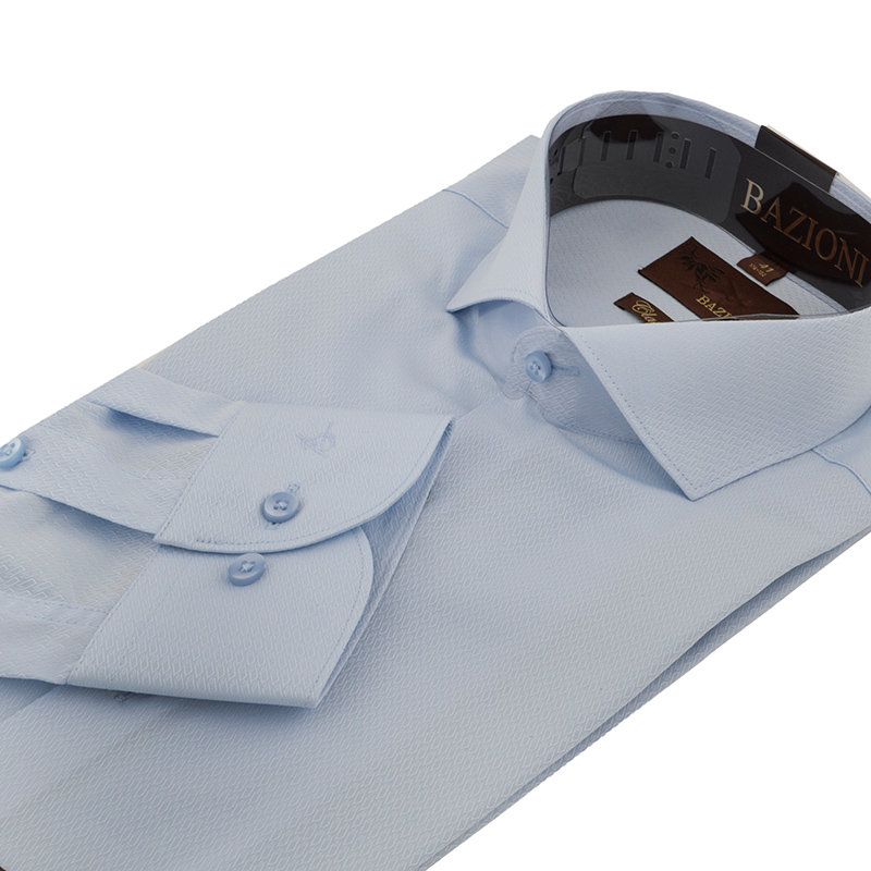 Classic fit, Воротник-акула, манжет скругленный на две пуговицы. застежка без отделки.