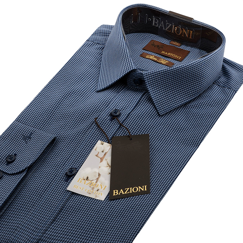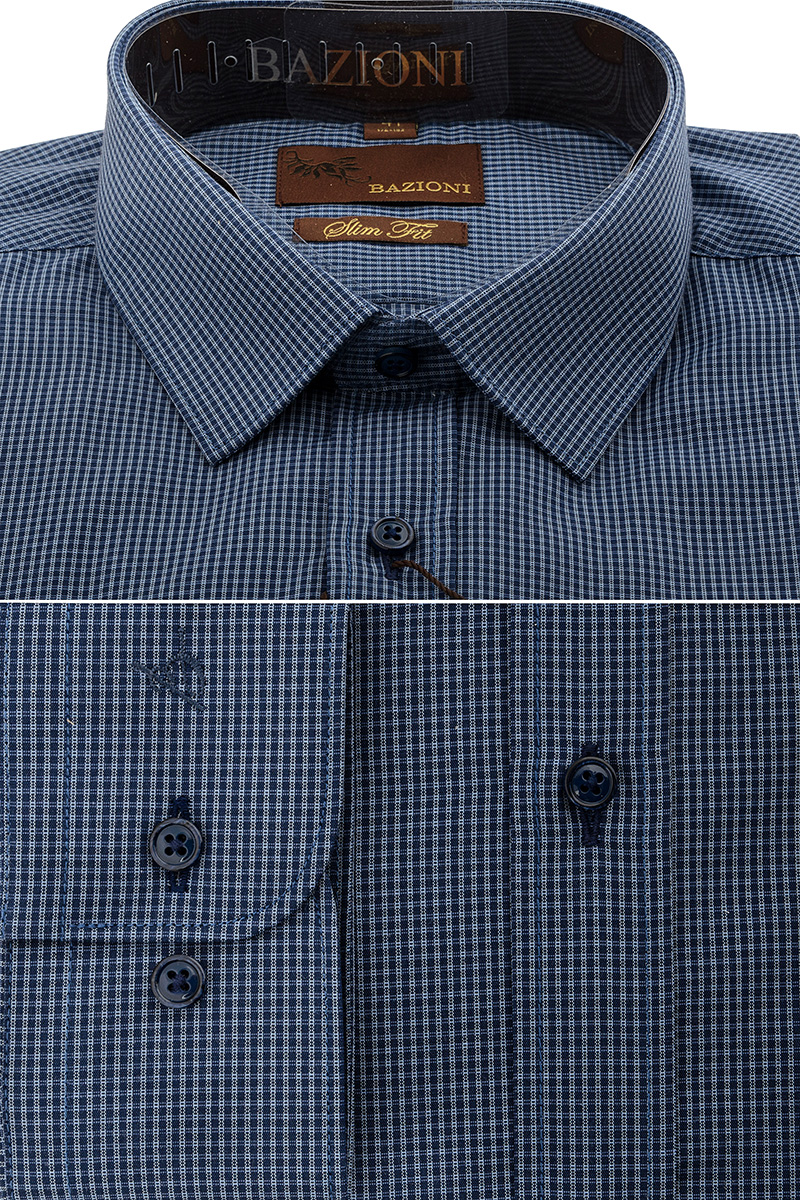 Slim fit, Воротник классический, манжет с закругленным углом, застежка - ложная планка