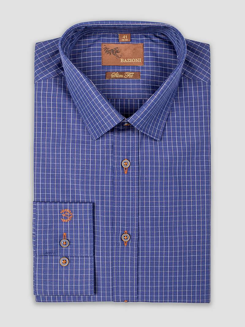 Slim fit, Воротник-классический со стойкой на 2 пуговицы, манжет прямой формы на две пуговицы, застежка - ложная планка.