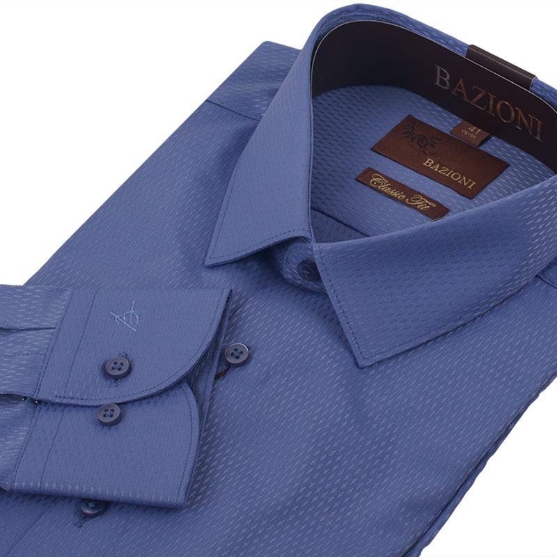 Classic fit, классический воротник, манжет скругленный на две пуговицы. Застежка без отделки.