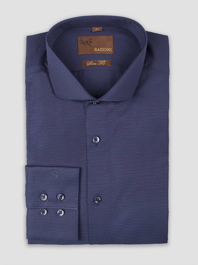 Slim fit, воротник - классический, манжет полукруглой формы, застежка - без отделки