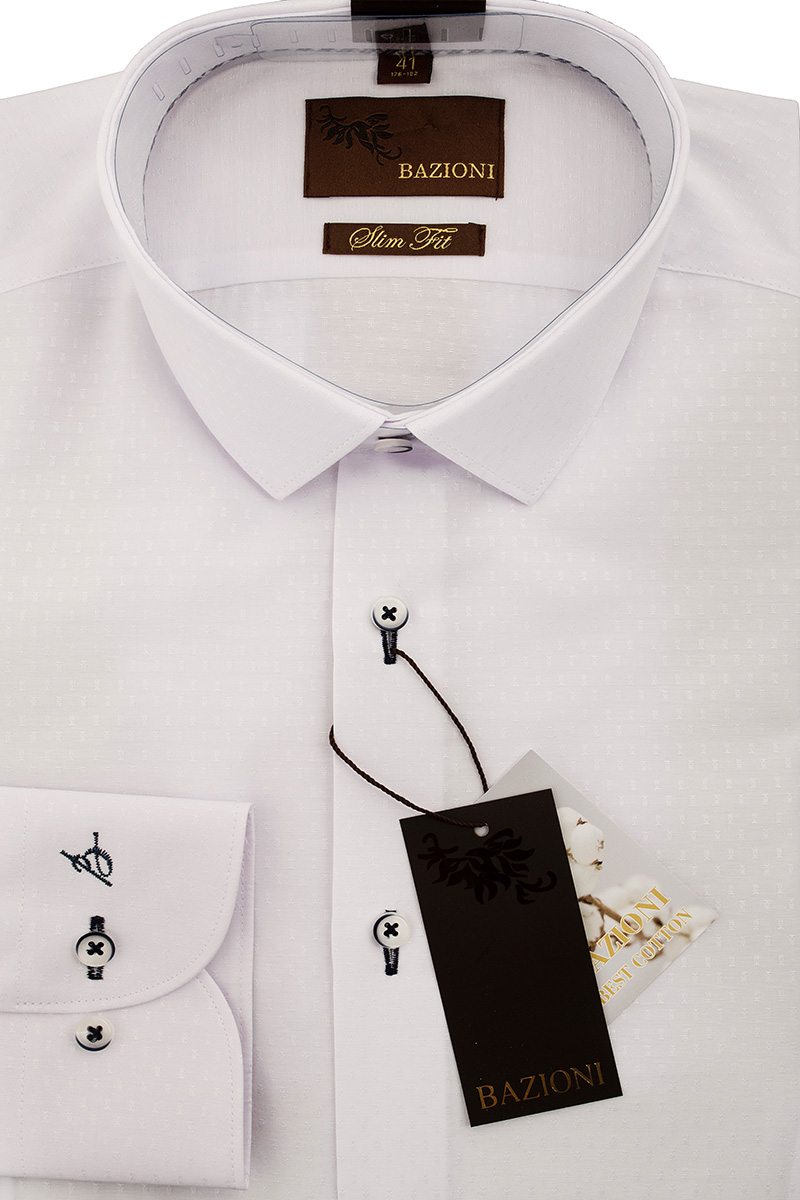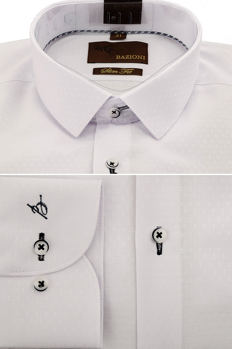 Ultra slim fit с отрезными бочками, воротник-узкий, манжет с закругленным углом на две пуговицы. застежка - без отделки. Отделка - кант в горловину стойки.