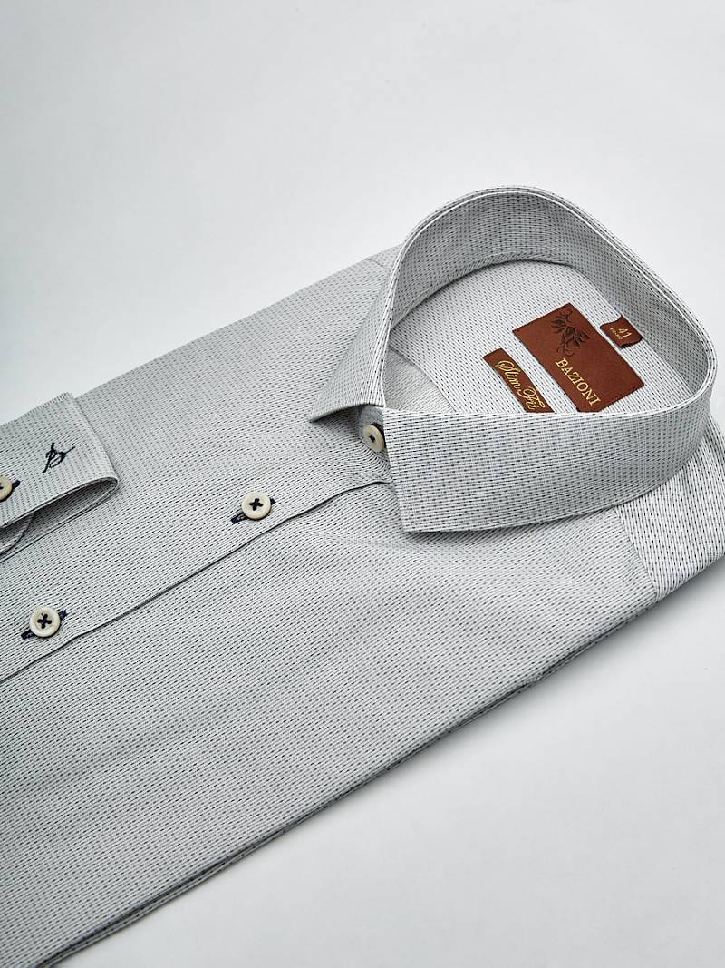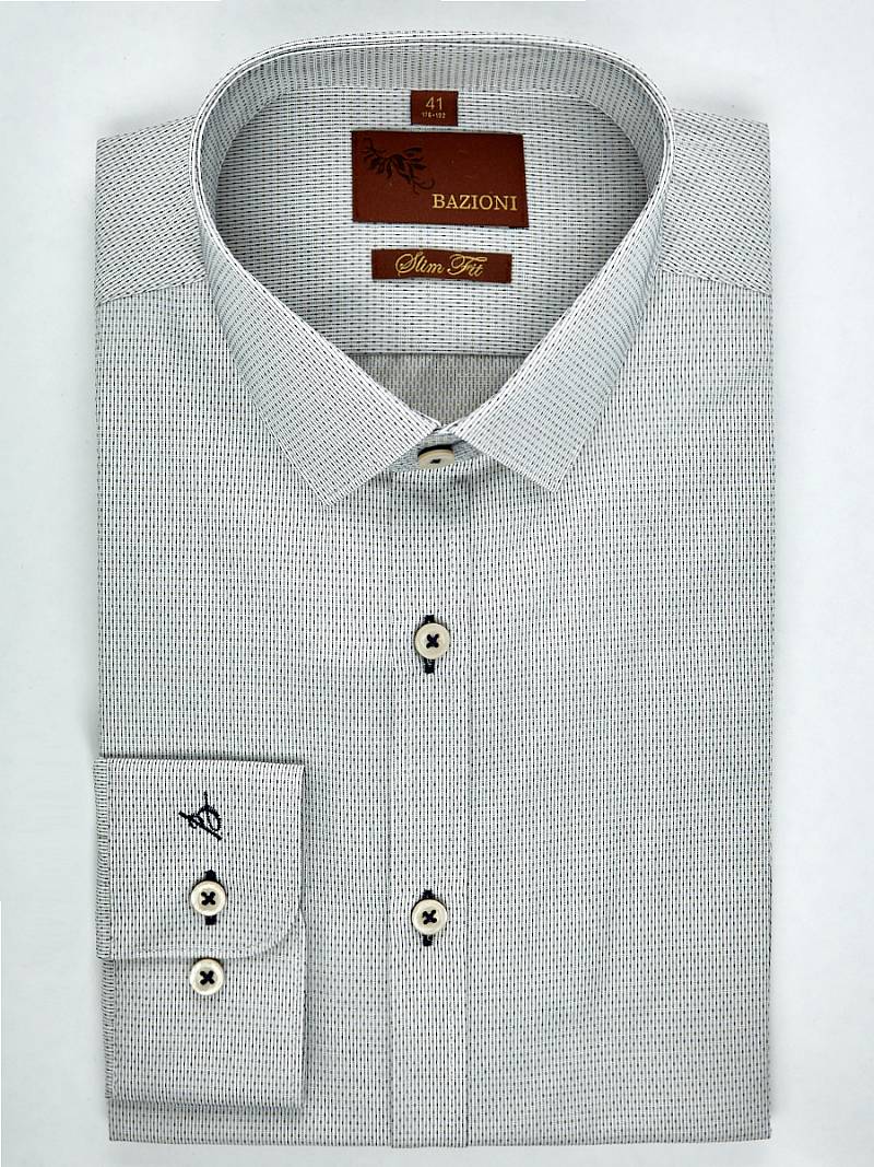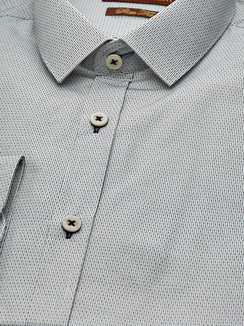 Slim fit, воротник-узкий на пуговицах, манжет с закругленными концами на две пуговицы, застежка - ложная планка.