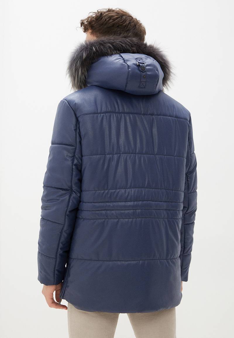 Куртка мужская прямого силуэта с капюшоном и меховой опушкой из натурального меха из ткани - имитирующей кожу Длина по спинке-82см. Ткань верха: 100%полиэстер. Подкладка: 100%полиэстер. Утеплитель: термофин 250 гр.