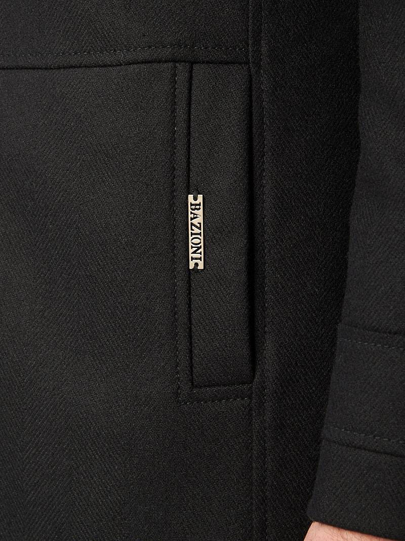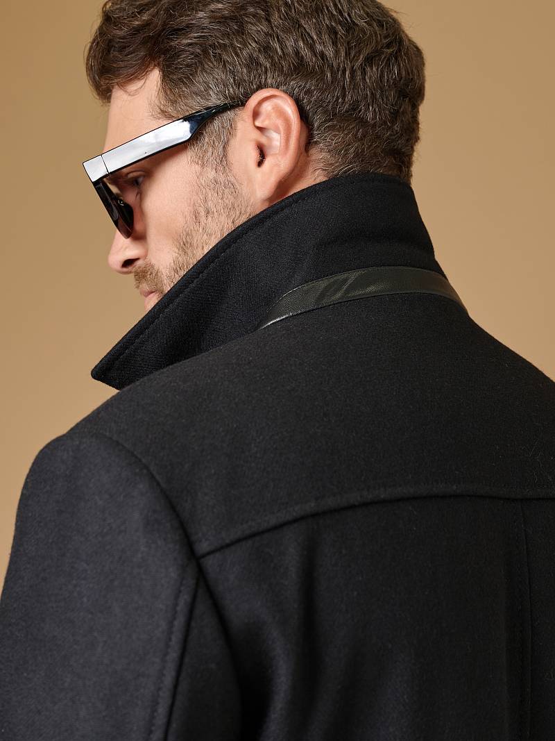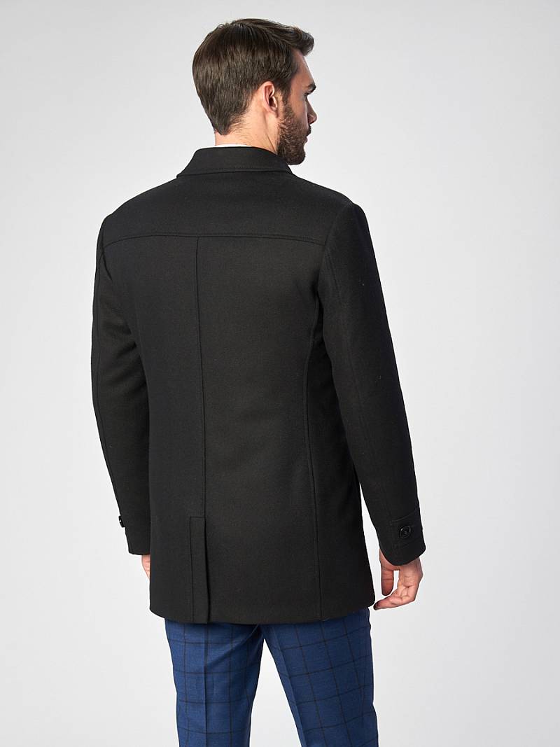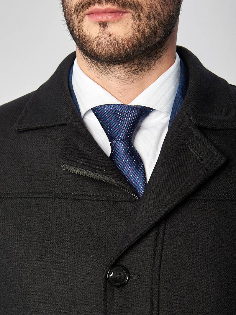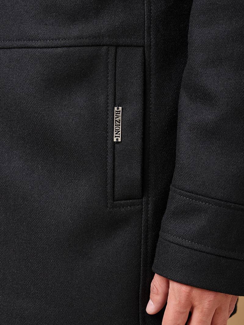 Пальто мужское утепленное с центральной застежкой на молнию и на 3 пуговицы. Полочки - резные состоят из трех частей: кокеток, средней части и нижней части. Спинка с кокетками и бочками. На средней полочке - верхние прорезные карманы на молнию. На нижней части полочек - боковые прорезные карманы с листочками. Спинка со средним швом и шлицей и рельефными швами. Рукава втачные, по низу передней части рукавов - притачная деталь-пата. В швах притачивания подбортов - отделочный кант.