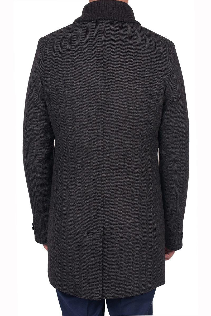 Пальто мужское.Застежка на молнию и 4 пуговицы. Карманы с втачной листочкой. Воротник трикотажный-шалька. одна шлица.BAZIONI