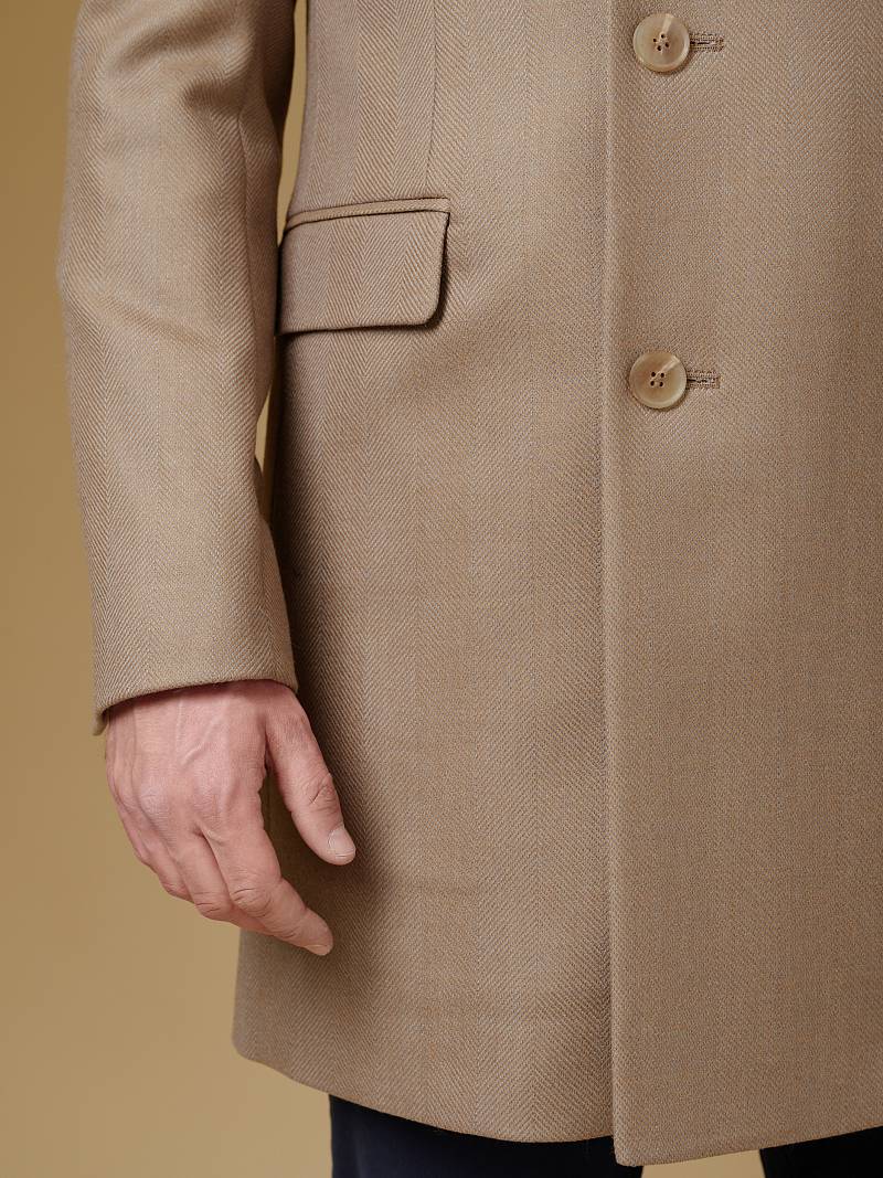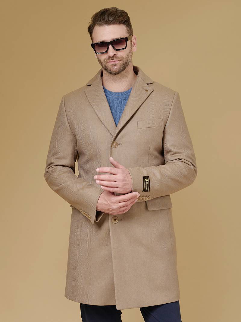 Классическое утепленное пальто (ПОЛУПРИЛЕГАЮЩИЙ СИЛУЭТ). Центральная застежка на 3 пуговицы, на полочке расположены два боковых кармана с клапанами и одной нагрудной листочкой. Рукав втачной, двухшовный, со шлицей и четырьмя декоративными пуговицами. По спинке расположена одна шлица. Пальто на подкладке с двумя внутренними карманами. Утеплитель: спинка-полочка-100г, рукава-60г.