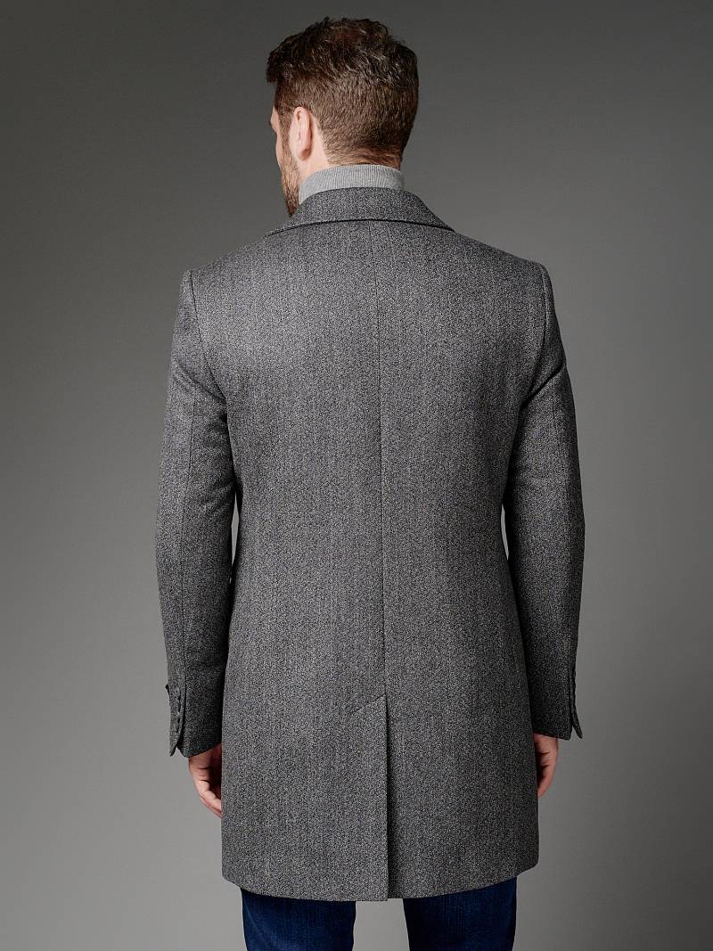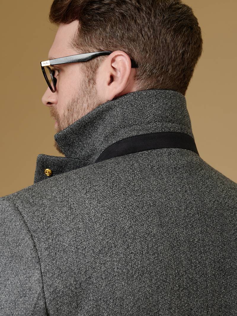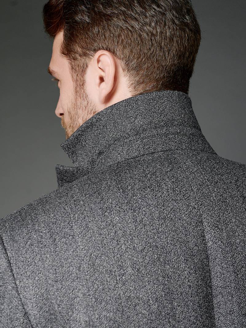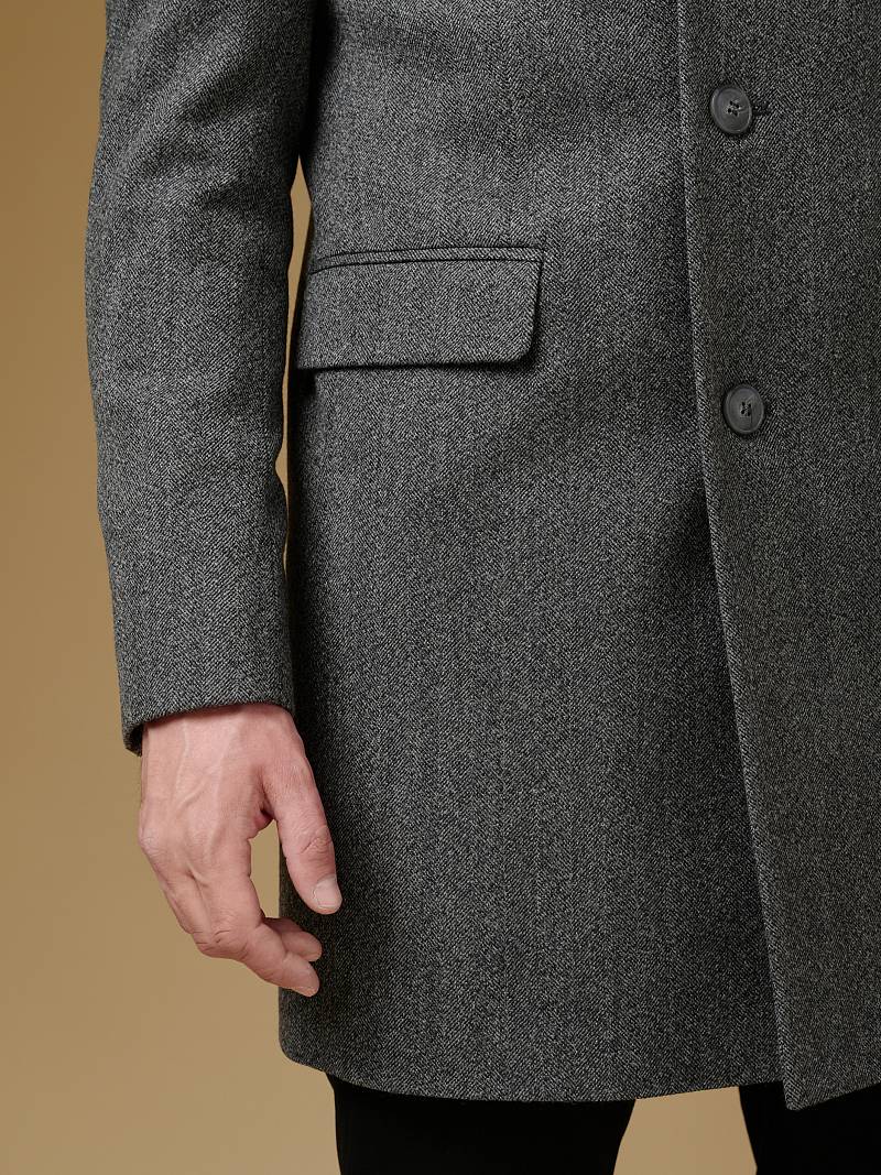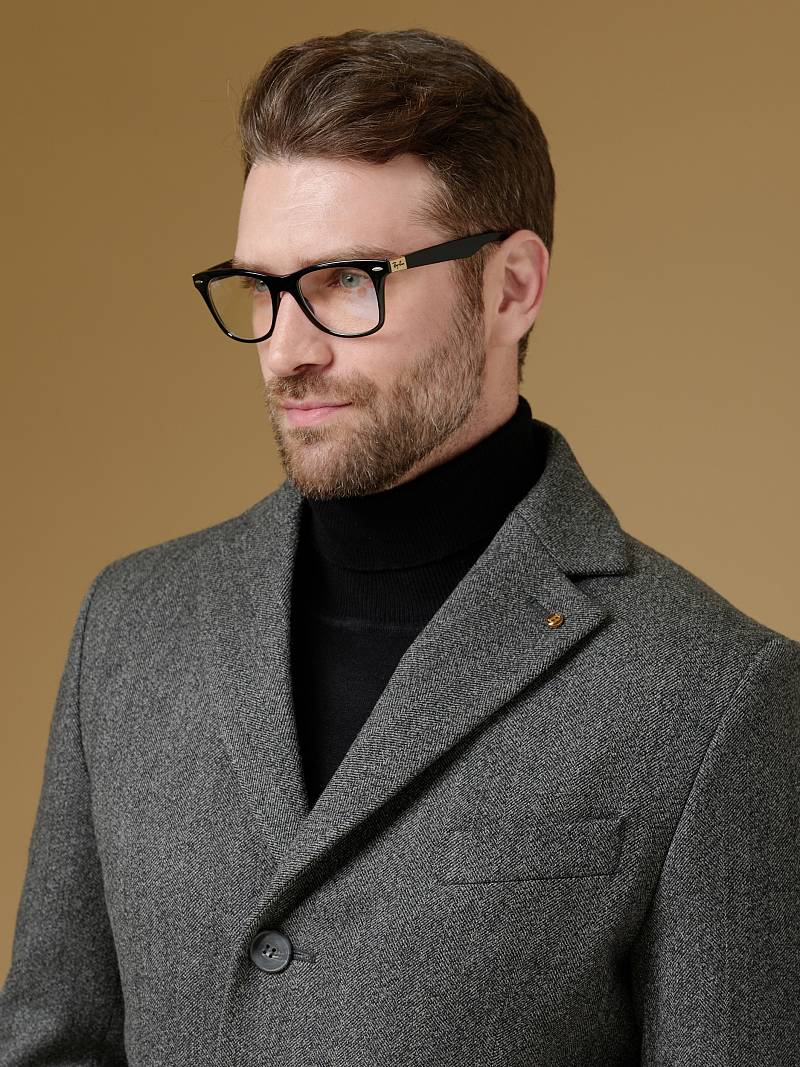 Классическое утепленное пальто (ПОЛУПРИЛЕГАЮЩИЙ СИЛУЭТ). Центральная застежка на 3 пуговицы, на полочке расположены два боковых кармана с клапанами и одной нагрудной листочкой. Рукав втачной, двухшовный, со шлицей и четырьмя декоративными пуговицами. По спинке расположена одна шлица. Пальто на подкладке с двумя внутренними карманами. Утеплитель: спинка-полочка-100г, рукава-60г.