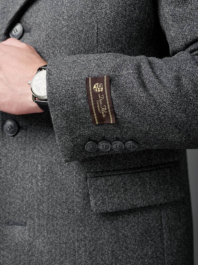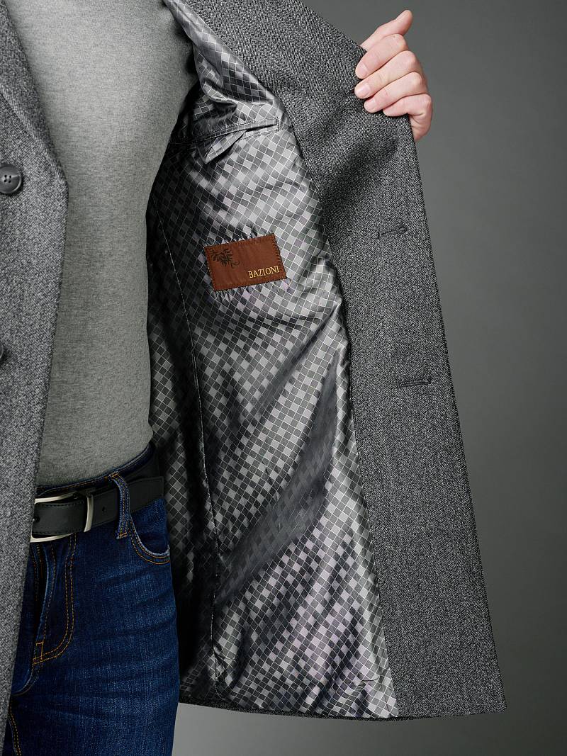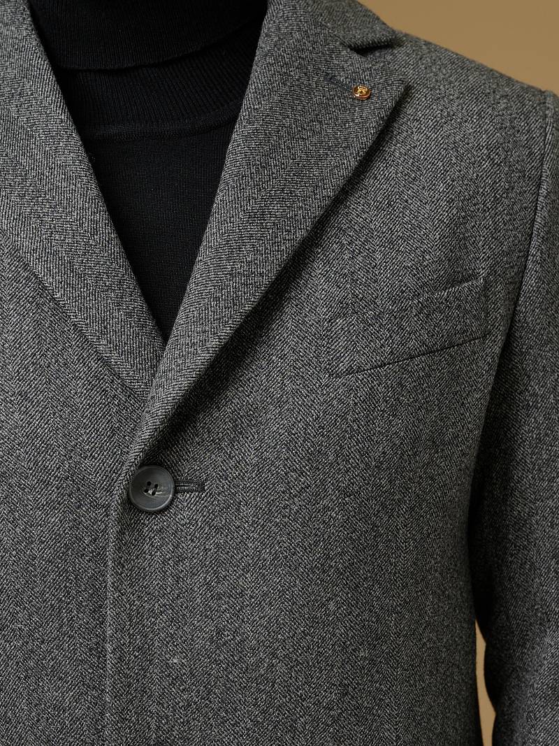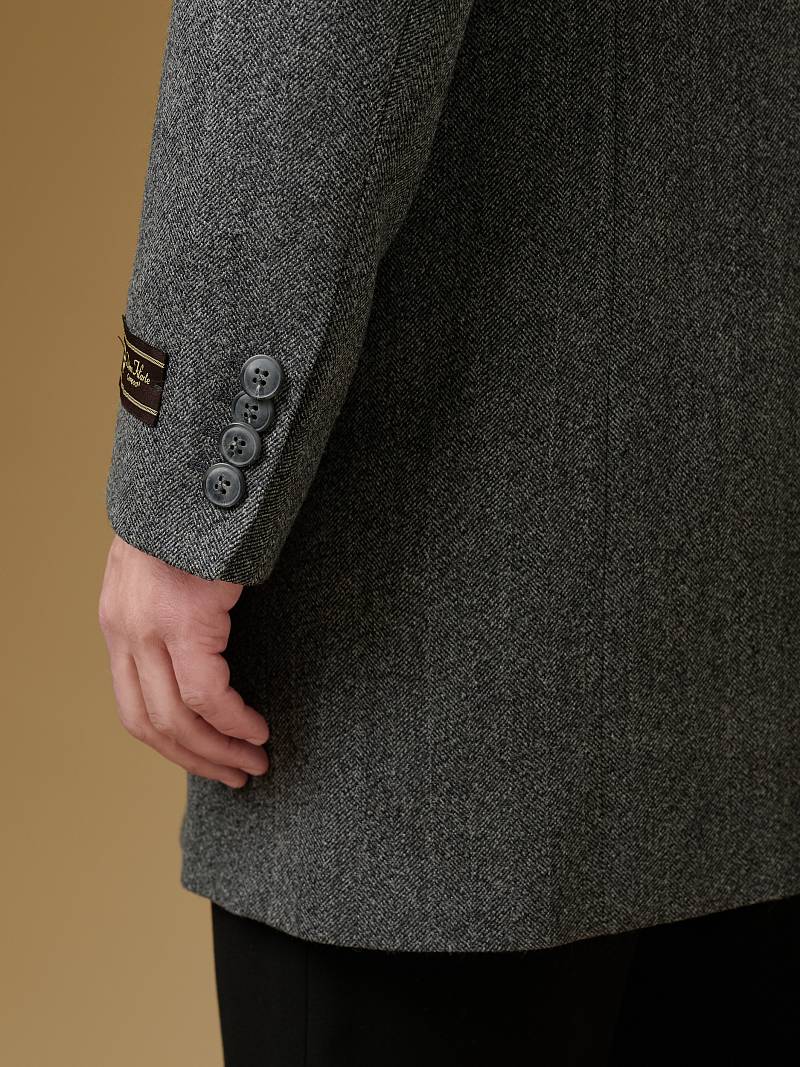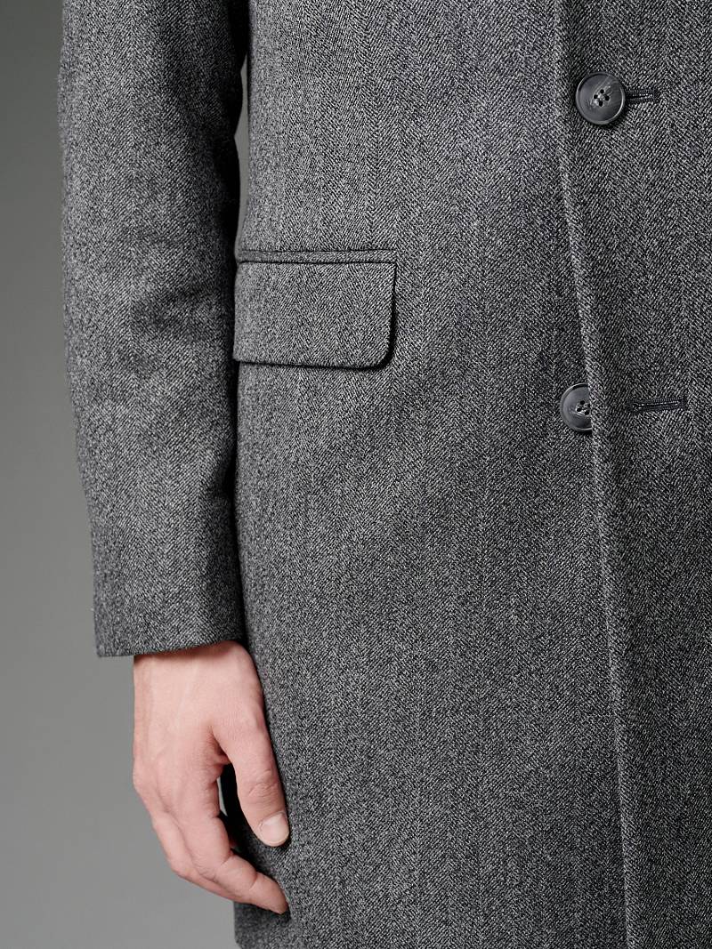 Классическое утепленное пальто (ПОЛУПРИЛЕГАЮЩИЙ СИЛУЭТ). Центральная застежка на 3 пуговицы, на полочке расположены два боковых кармана с клапанами и одной нагрудной листочкой. Рукав втачной, двухшовный, со шлицей и четырьмя декоративными пуговицами. По спинке расположена одна шлица. Пальто на подкладке с двумя внутренними карманами. Утеплитель: спинка-полочка-100г, рукава-60г.