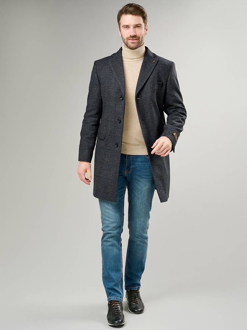 Классическое утепленное пальто Classic Fit (ПОЛУПРИЛЕГАЮЩИЙ СИЛУЭТ), на 3 пуговицы, с нагрудной листочкой и двумя боковыми карманами с клапанами. По спинке расположена одна шлица.
