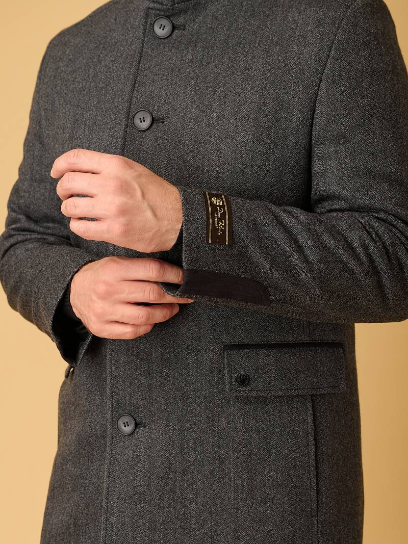 Мужское утепленное пальто (ПОЛУПРИЛЕГАЮЩИЙ СИЛУЭТ). Дизайнеры марки BAZIONI создали классическое пальто из осенне-зимней коллекции, вдохновившись главным принципам марки — стиль и качество, неподверженные времени. Благодаря выверенным лекалам и кропотливой сборке деталей силуэт вещи получился четким, а посадка комфортной. Для создания модели использовали 100% шерстяную ткань высокого качества которую дополнительно утеплили, по этому пальто получилось легким и теплым одновременно. Однобортное пальто с воротником-стойкой дополнено боковыми карманами с клапанами и двумя карманами в боковых швах. По воротнику и рукавам использовали отделку из кожи. Пальто обработано шелковой подкладкой с двумя внутренними карманами. Дизайнеры марки BAZIONI тщательно подходят к выбору материалов. Пуговицы подбираются и красятся индивидуально под каждую ткань, а прикладные материалы используют только от передовых производителей. Утеплитель: спинка-полочка-100г, рукава-60г. Пальто мужское, классическое, под джины, повседнев
