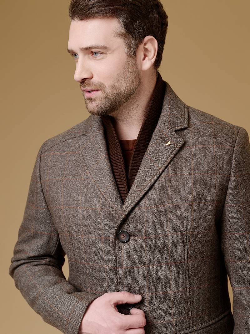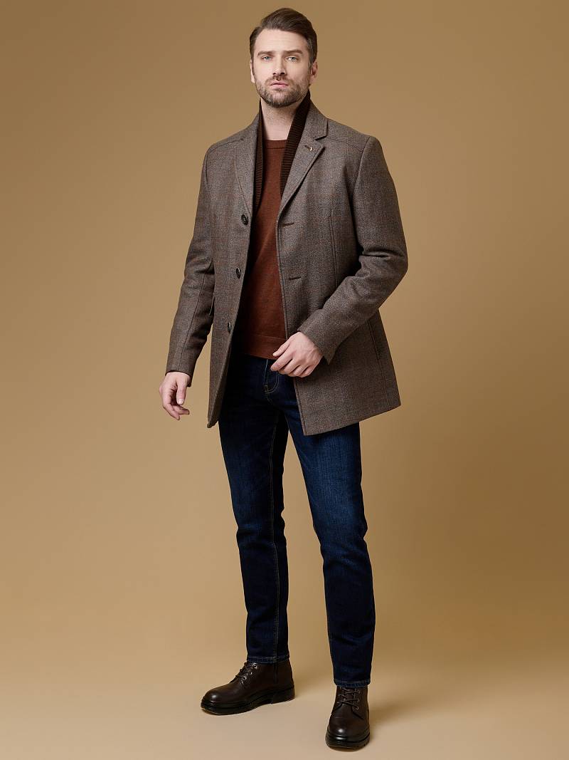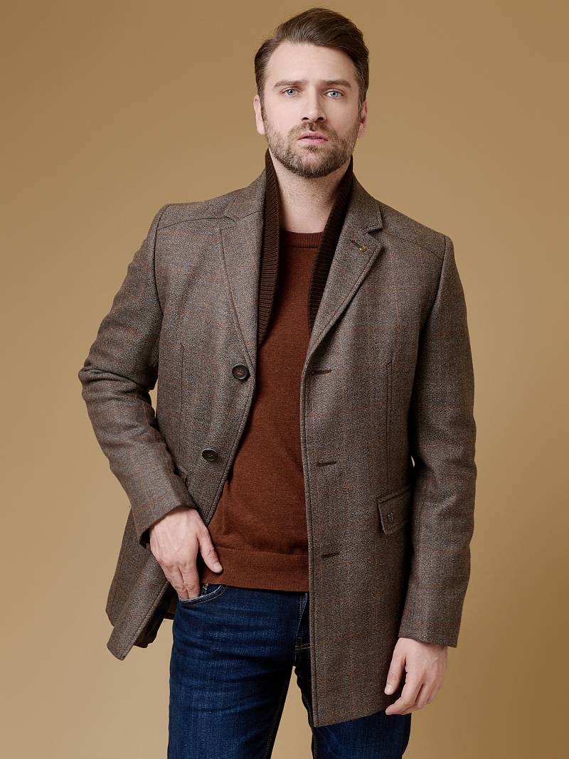 2068-3 S BEIGE CHECK/ Пальто мужское