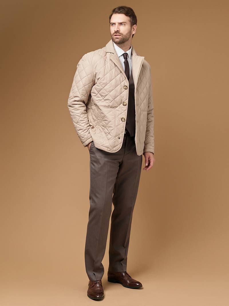 Куртка - пиджак мужской стёганый с утеплителем, Застёжка на три пуговицы, Карманы - с листочкой, Воротник - с лацканами. Длина изделия по спинке для роста 176 - 72см. Ткань верха: 100%полиэстер. Подкладка: 100%полиэстер. Утеплитель: термоплюс 100 гр./100гр.