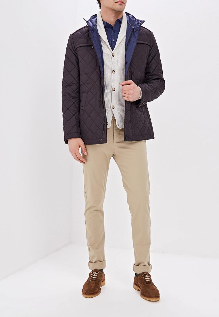Куртка мужская стёганая с утеплителем. Застёжка на кнопки. Отрезная кокетка полочки и спинки. Карманы боковые с листочкой на кнопке и нагрудные на молниях. Воротник - стойка . По низу рукава - шлица на кнопке. Длина изделия по спинке для роста 176 - 77см. Ткань верха: 100%полиэстер. Подкладка: 100%полиэстер. Утеплитель: термоплюс 100гр