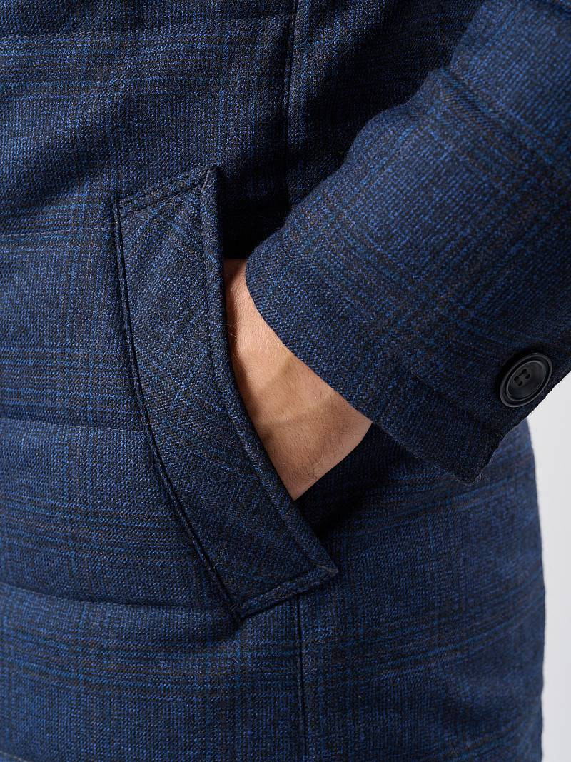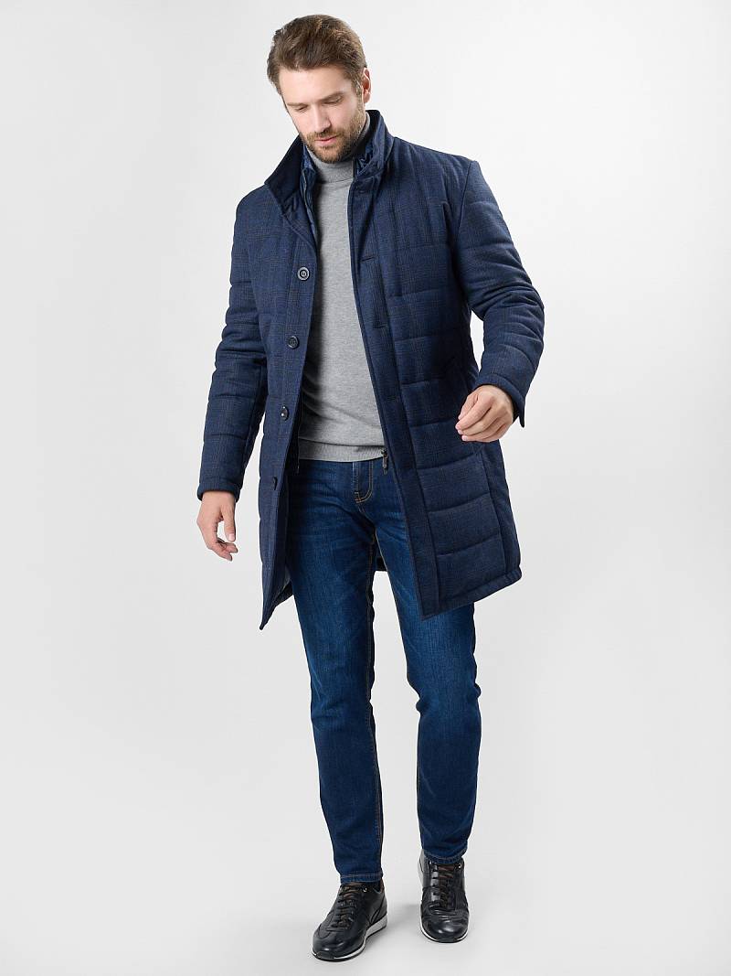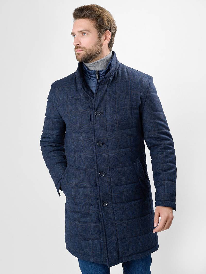 Куртка мужская утепленная с отстегивающийся манишкой на молнию. Застежка куртки на 6 пуговиц. Воротник - стойка. Полочки, спинка, рукава- простеганы горизонтальной стежкой. На полочках - два нижних боковых кармана с листочками. В нижней части среднего шва спинки- шлица на 2-х кнопках. Рукава втачные с локтевыми швами. На подкладке - два внутренних прорезных кармана на молниях. Длина по спинке для размера-роста 50/176 - 95см. Ткань верха: 100% шерсть. Подкладка: 100% полиэстер. Утеплитель: термоплюс 200гр./160гр.