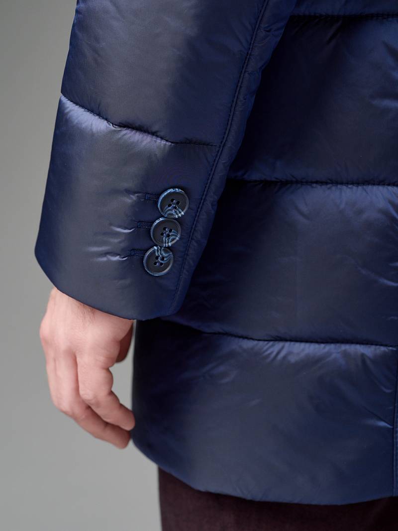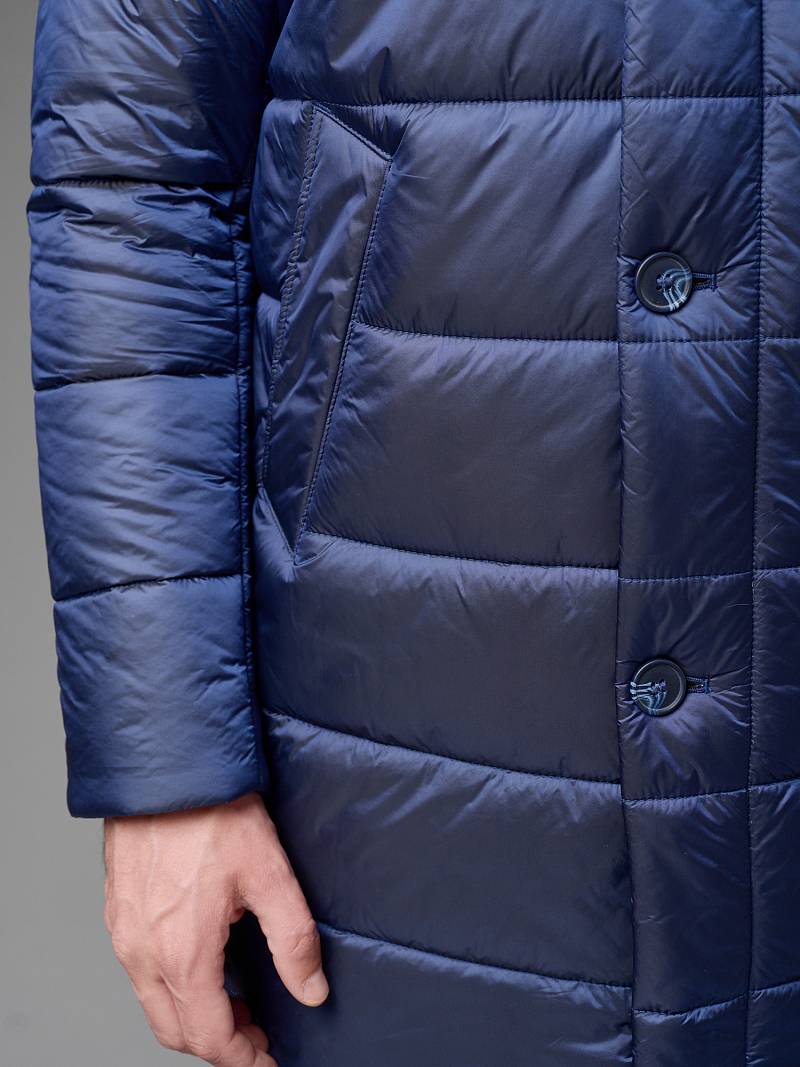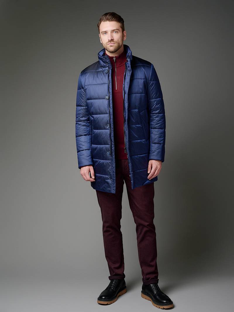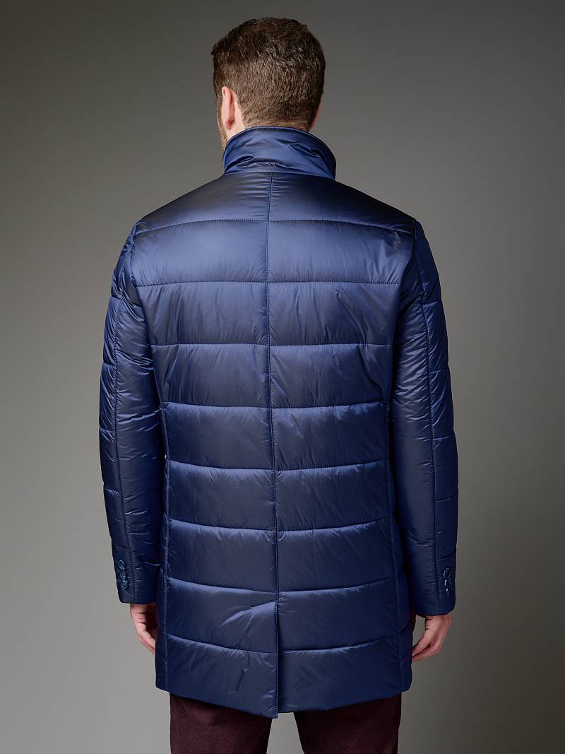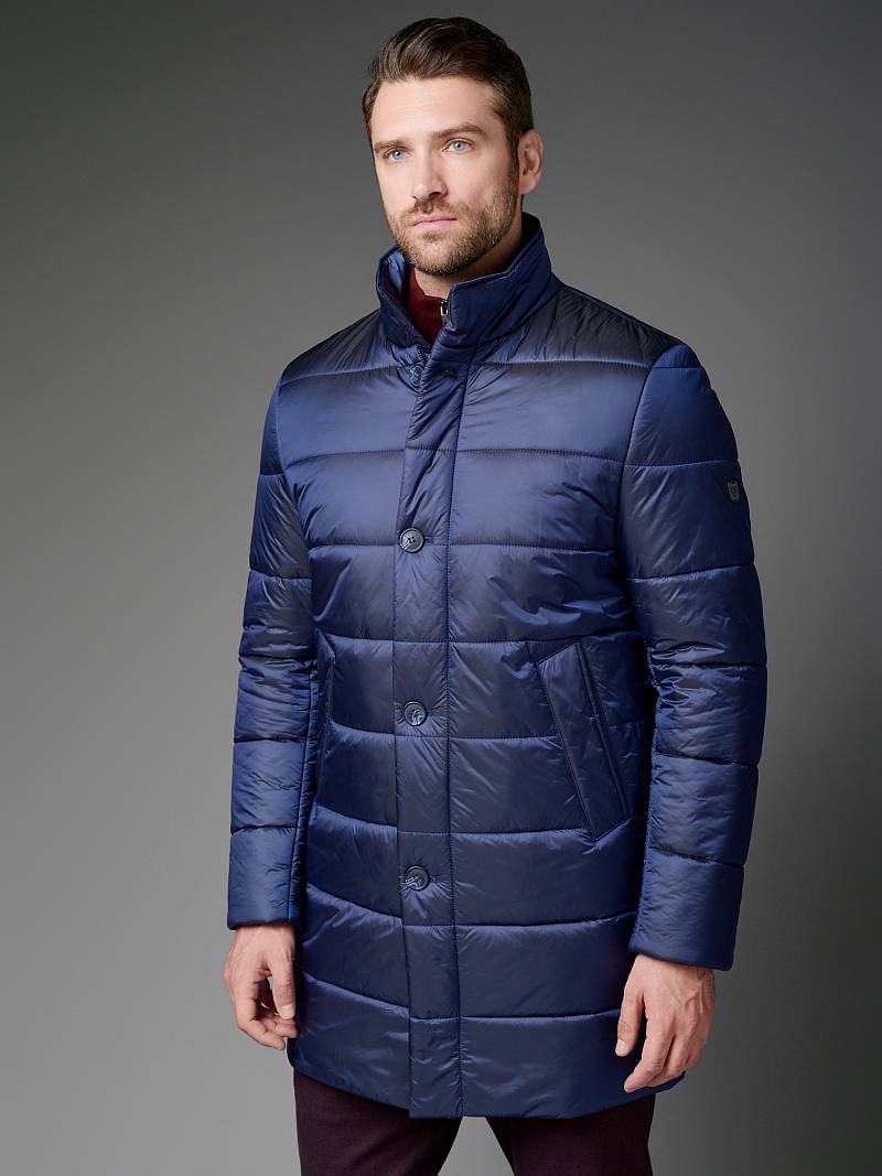 Мужская стеганая куртка - пальто из курточной ткани. Инновационная пуходержащая ткань верха с обработкой wr, cire (ветро и влаго защита). - имеет благородный блеск, легкая и практичная. Удобный, утепленный воротник -стойка на двух кнопках. Застежка изделия с планкой на молнию японской фирмы YKK, рассчитана на высокий цикл застегиваний и расстегиваний. Ветрозащитная планка на пуговицах от холода в непогоду. Полочки и спинка простеганы. На полочках - два теплых боковых кармана с листочкой на скрытых магнитах. Мешковина карманов из велюра, придает мягкость, создает тепло и комфорт в изделии. Спинка со шлицей. Рукава втачные с локтевыми швами. Технологичная внутренняя подкладка с защитой от миграции утеплителя, на подкладке - два вместительных внутренних кармана для документов с застежкой молнией. Длина по спинке-90см. Ткань верха: 100%нейлон. Подкладка: 100%полиэстер. Утеплитель: термоплюс 200гр/200гр.