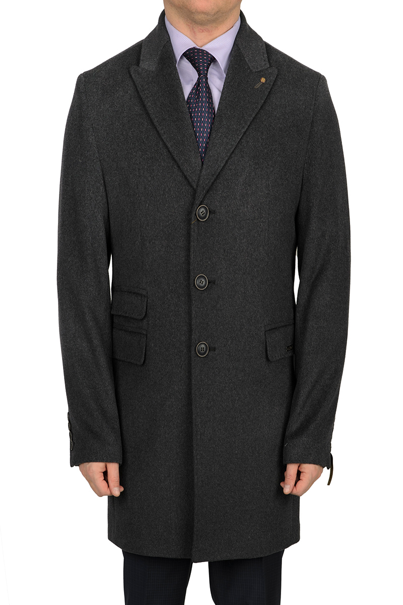 Пальто с центр.застежкой на 3 пуговицы, лацкан "ласточкин хвост", боковые карманы с клапанами, по спинке шлица