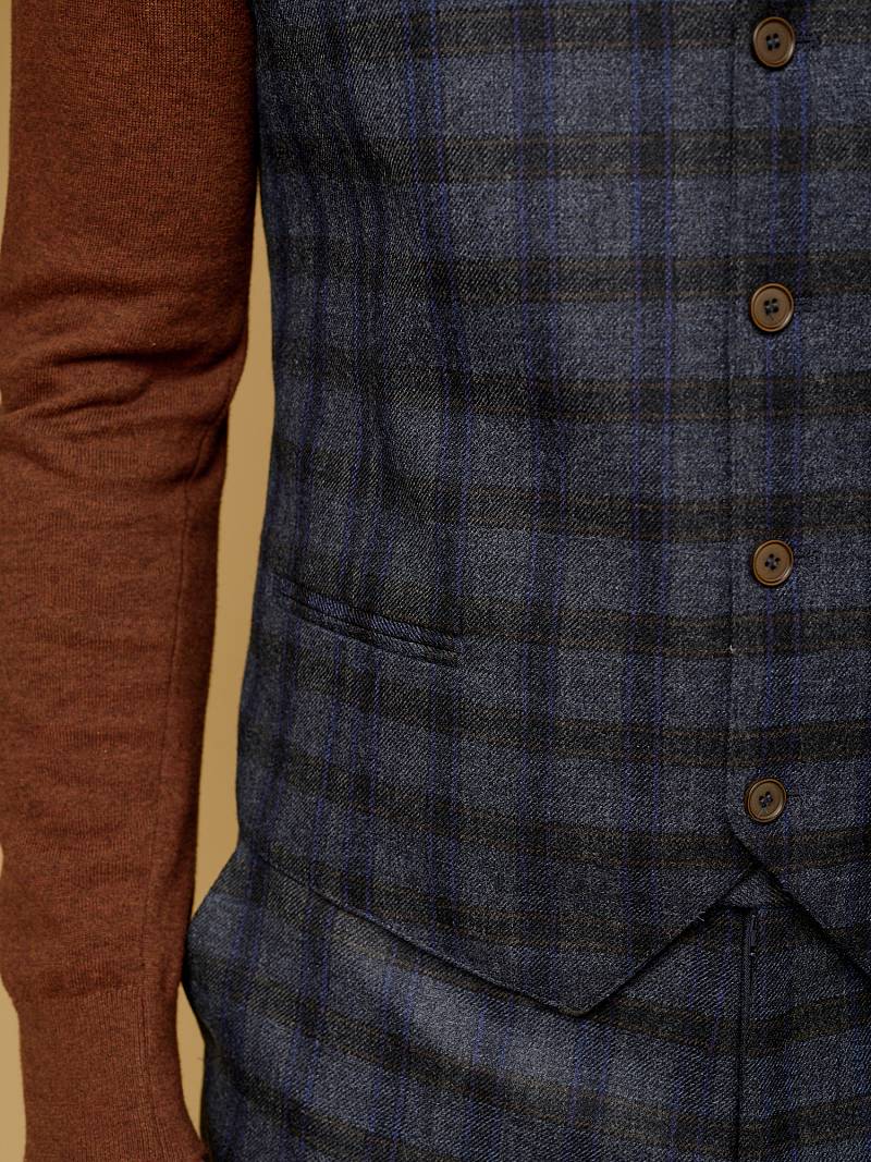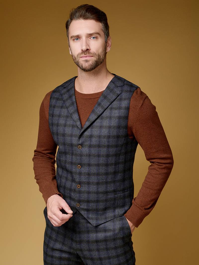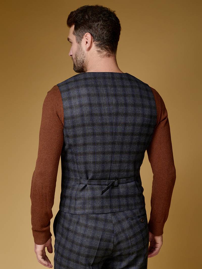 Classic fit (ПОЛУПРИЛЕГАЮЩИЙ СИЛУЭТ). Жилет мужской классический, с двумя боковыми карманами, по спинке расположен хлястик для регулировки объема в области талии.