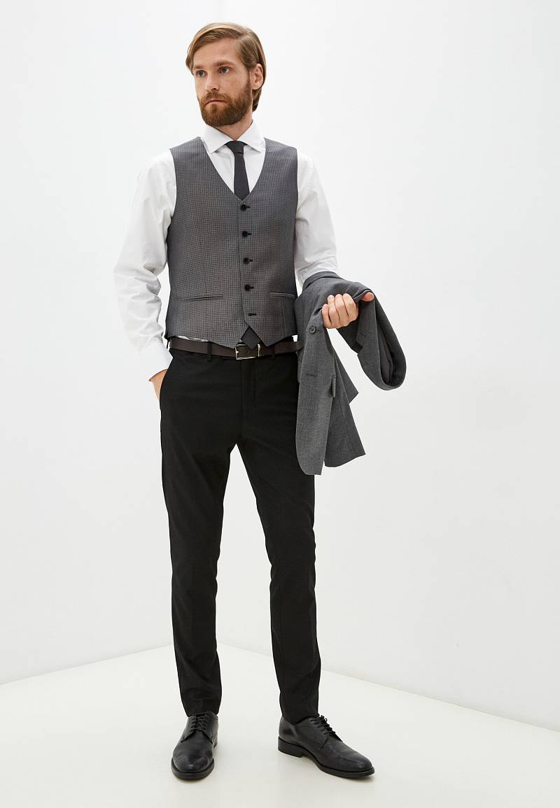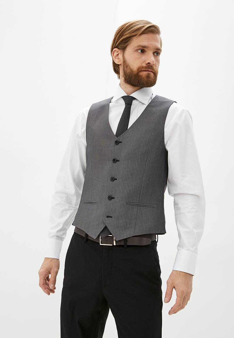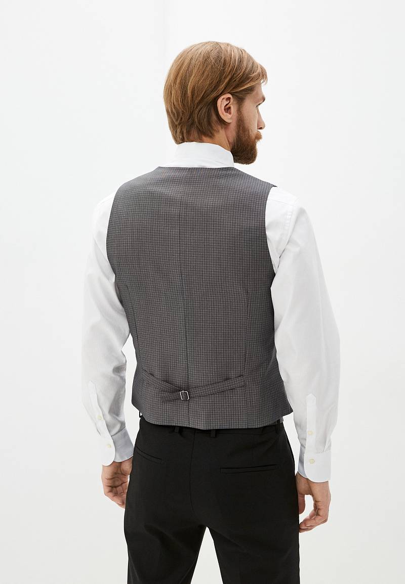 Slim fit. Жилет мужской классический, с двумя боковыми карманами, по спинке расположен хлястик для регулировки объема в области талии.