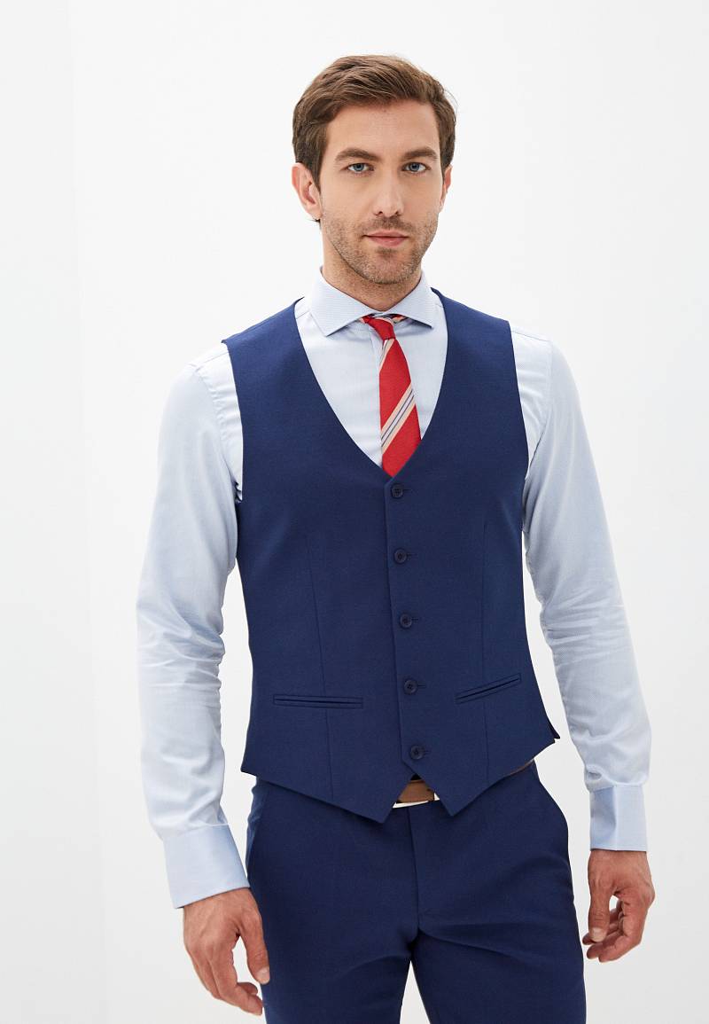 Slim fit. Жилет мужской классический, с двумя боковыми карманами, по спинке расположен хлястик для регулировки объема в области талии.