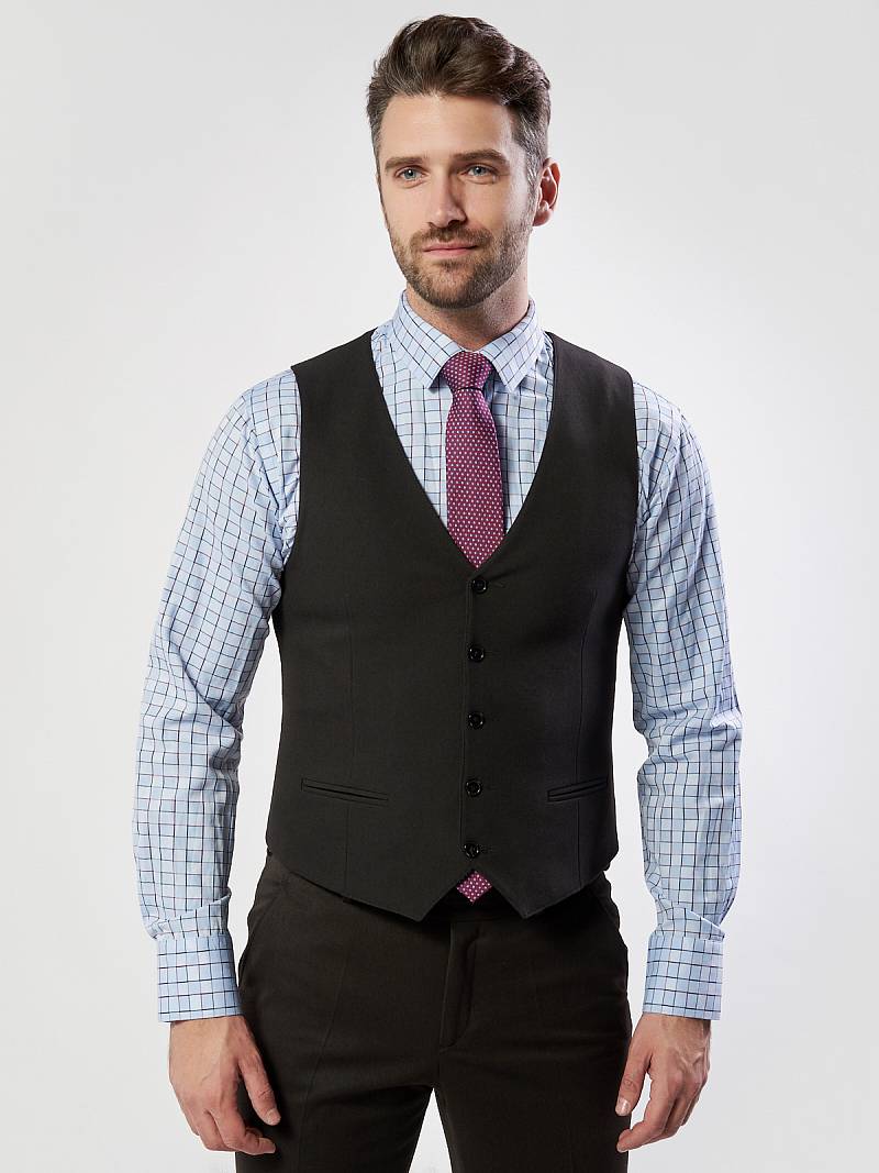 Slim fit (ПРИЛЕГАЮЩИЙ СИЛУЭТ). Жилет мужской классический, с двумя боковыми карманами, по спинке расположен хлястик для регулировки объема в области талии.