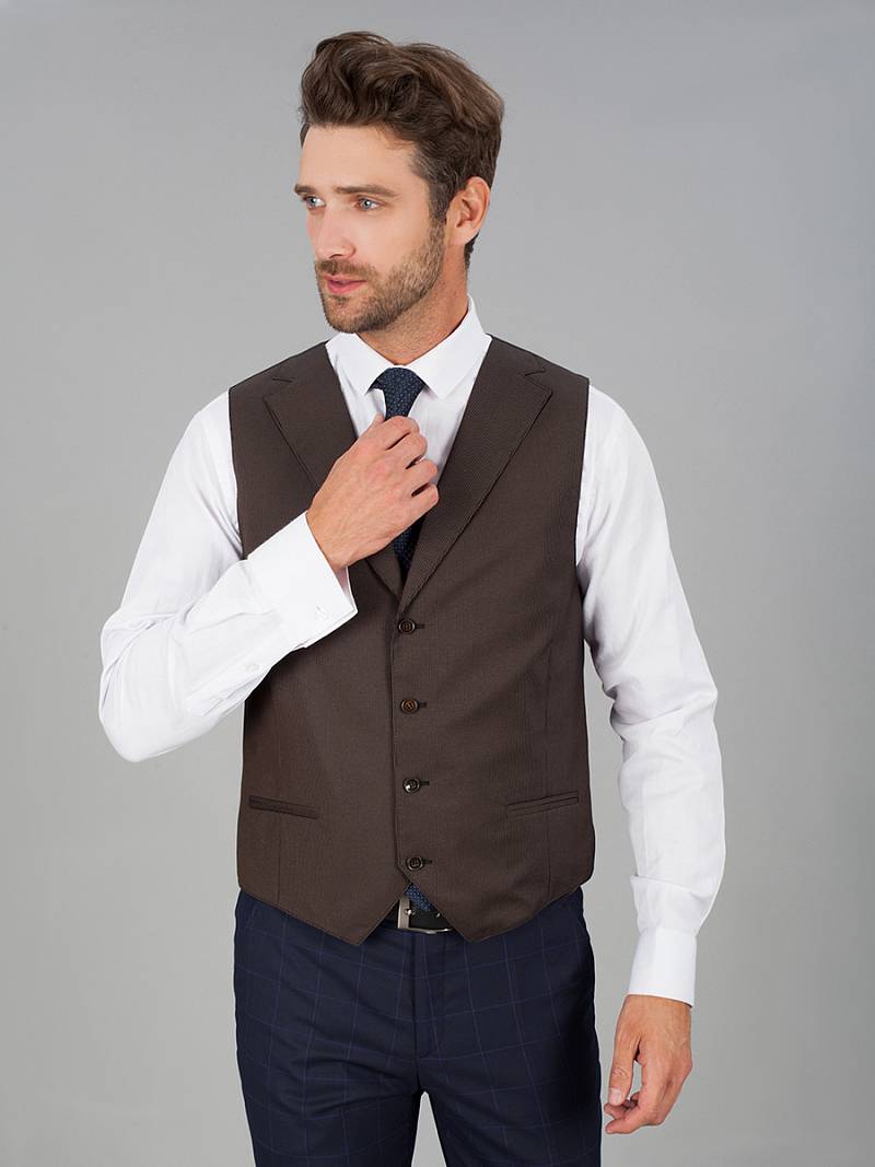 Classic fit. Жилет мужской классический, с двумя боковыми карманами, по спинке расположен хлястик для регулировки объема в области талии.