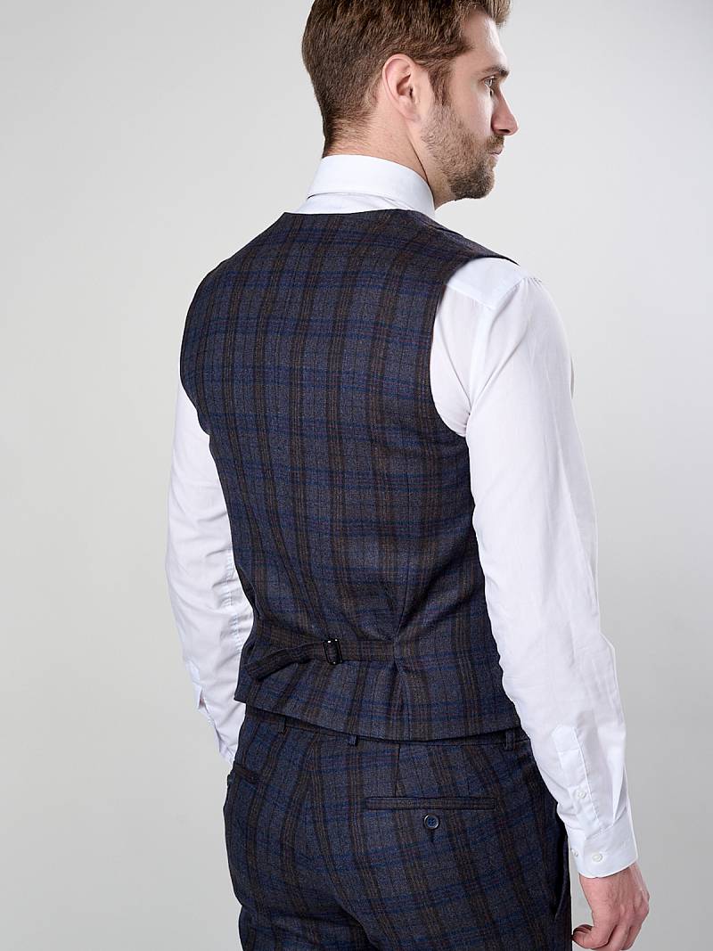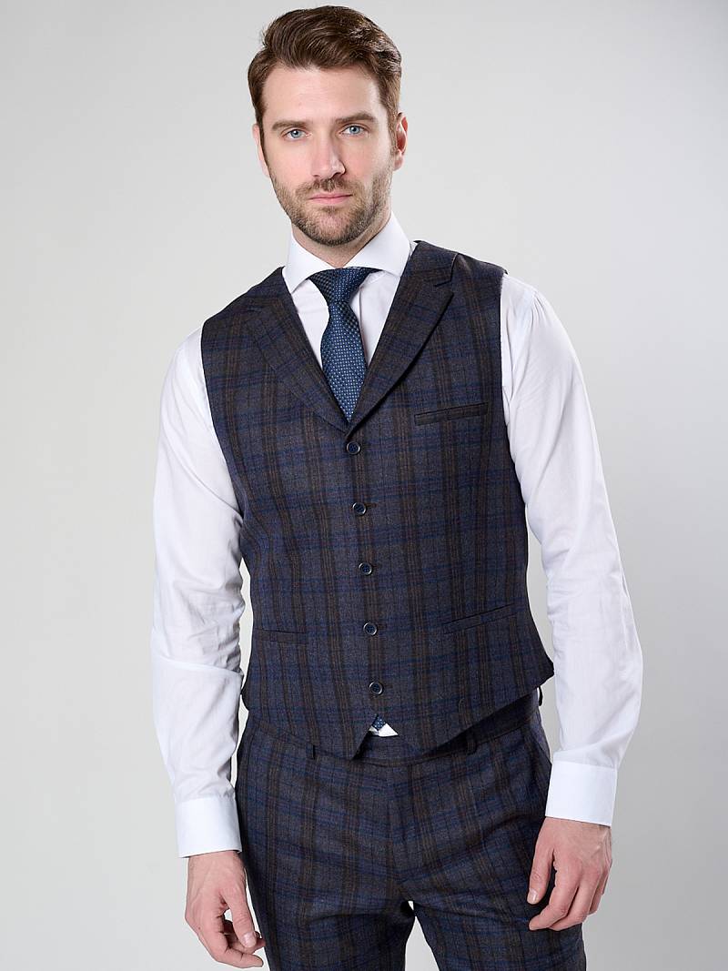 Slim fit. Жилет мужской классический, с двумя боковыми карманами, по спинке расположен хлястик для регулировки объема в области талии.