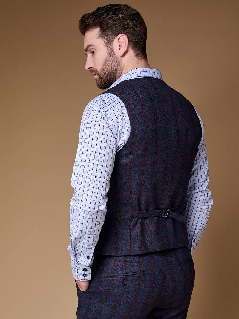 Slim fit (ПРИЛЕГАЮЩИЙ СИЛУЭТ), рекомендуется брать на размер больше. Жилет мужской классический, с двумя боковыми карманами, по спинке расположен хлястик для регулировки объема в области талии.