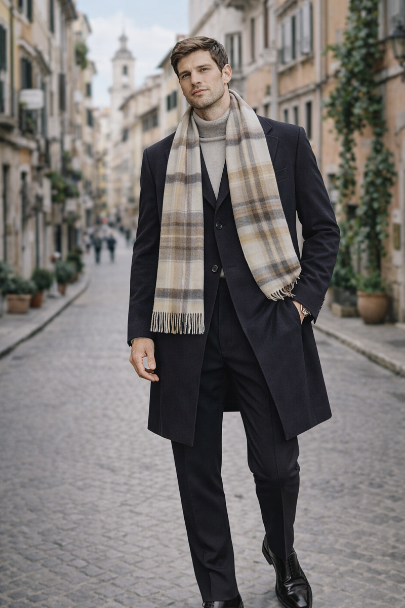Бренд BAZIONI известен своим вниманием к деталям и высоким стандартам качества. Этот шарф — не просто функциональный элемент гардероба, а стильный акцент, способный преобразить любой образ. Идеальный выбор для тех, кто ценит натуральные материалы, классический дизайн с элементами утончённости и комфорт в холодное время года.