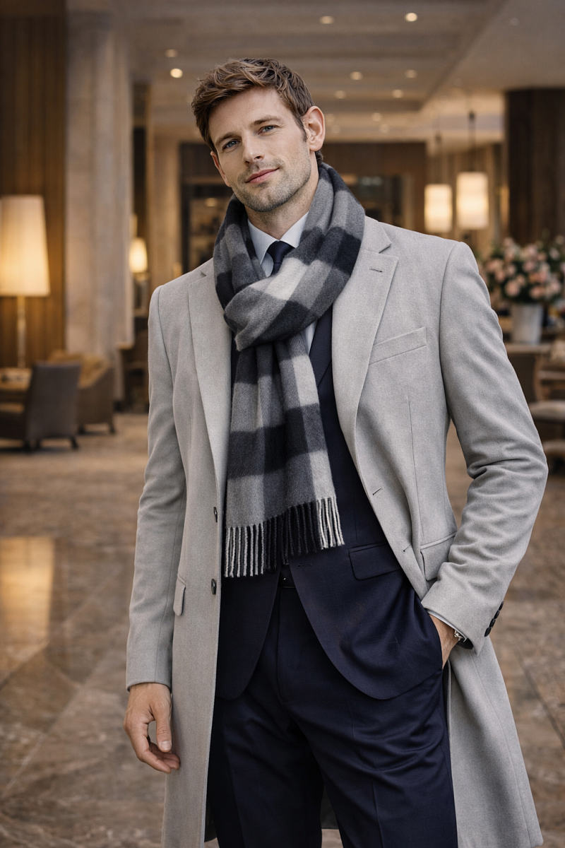 Универсальный серый цвет легко сочетается с пальто, куртками и пиджаками, дополняя образ аккуратным и элегантным акцентом.