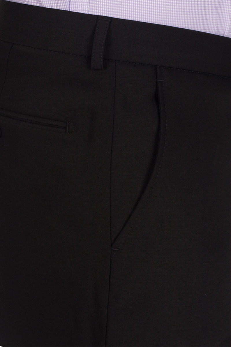 Slim fit (ПРИЛЕГАЮЩИЙ СИЛУЭТ), рекомендуется брать на размер больше. Черные зауженные брюки с низкой посадкой, благодаря лаконичному крою без защипов, гармонично впишутся в базовый гардероб. Брюки выполнены из премиальной шерстяной ткани, а входящая в состав лайкра обеспечит дополнительный комфорт и удобство. Брюки с боковыми наклонными карманами и двумя задними карманами "в рамку". Верхний срез брюк обработан поясом с корсажной лентой и шлевками под ремень. Брюки мужские, классические, нарядные, повседневные, молодежные, casual, для работы в офисе, модные, для мужа, сына, брата, на праздник.