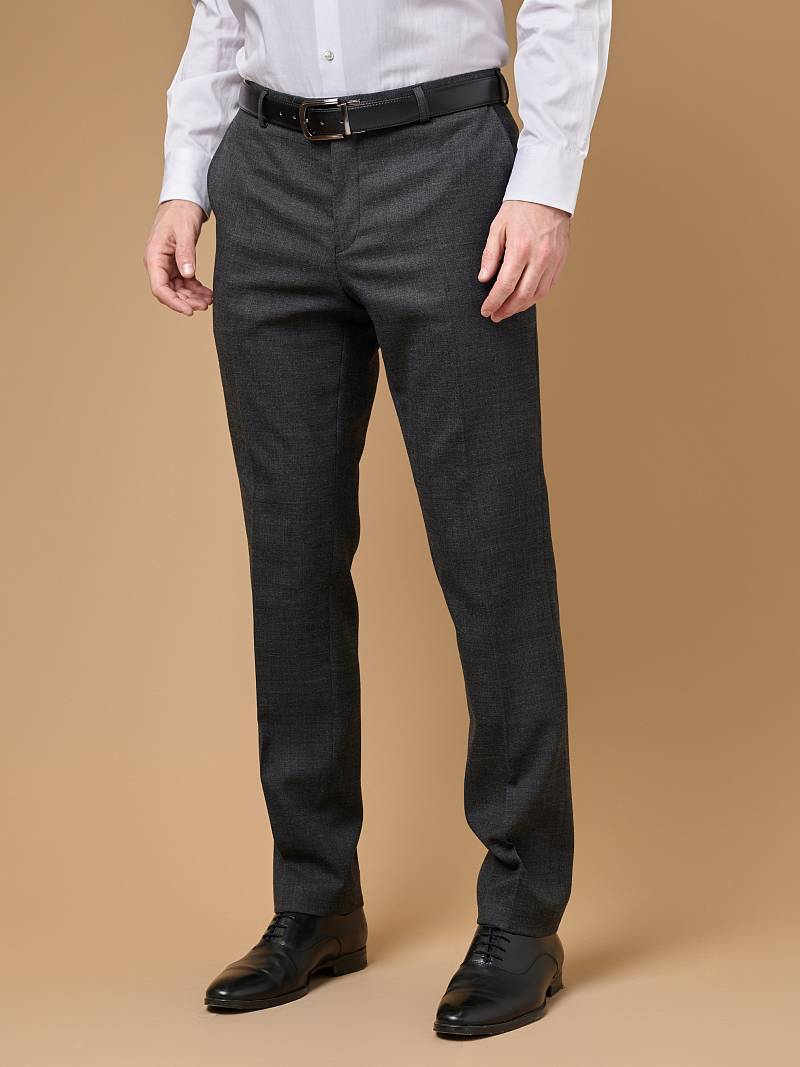 Classic fit (ПОЛУПРИЛЕГАЮЩИЙ СИЛУЭТ). Мужские брюки со стрелками благодаря лаконичному прямому крою без защипов с классической посадкой одинаково гармонично дополнит строгий офисный образ с пиджаком и менее формальный с джемпером или рубашкой. Брюки с боковыми наклонными карманами и одним задними карманом "в рамку". Верхний срез брюк обработан поясом с корсажной лентой и шлевками под ремень. Брюки мужские, классические, нарядные, повседневные, молодежные, casual, для работы в офисе, модные, для мужа, сына, брата, на праздник.
