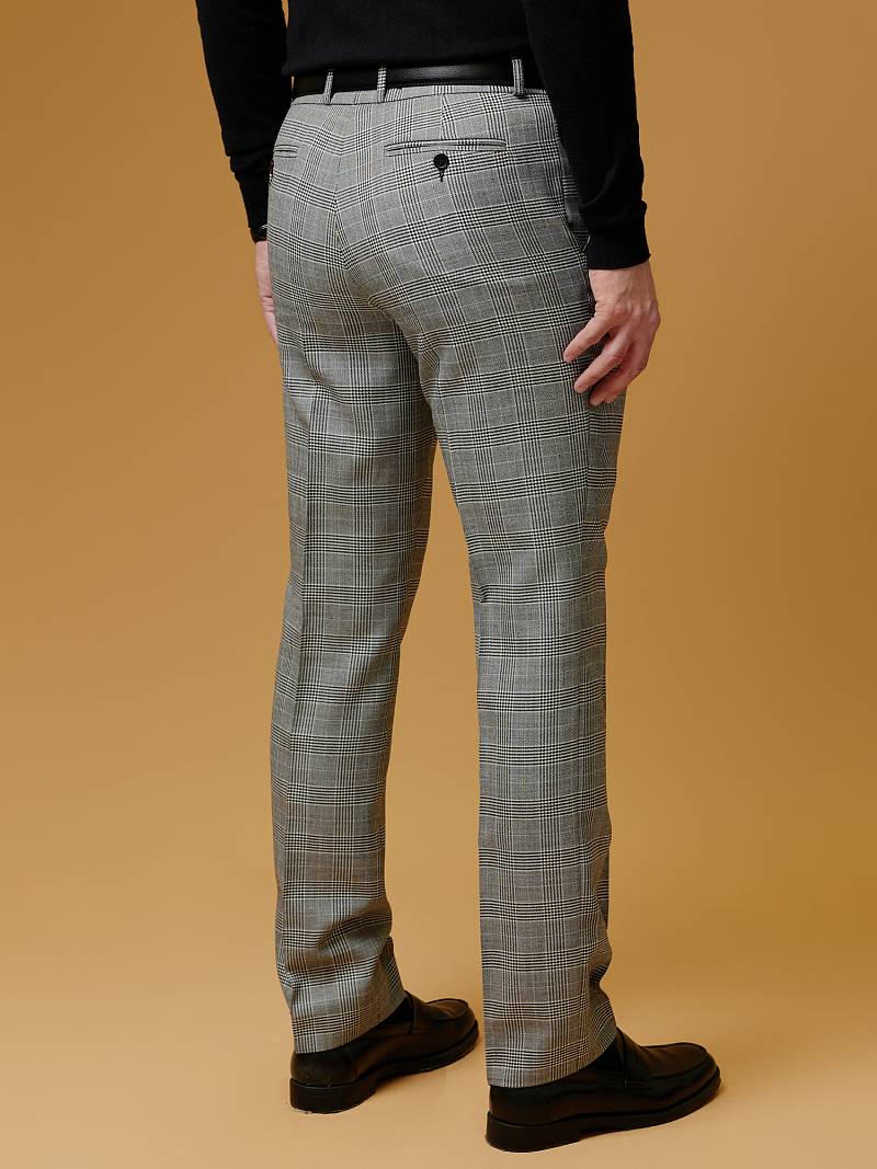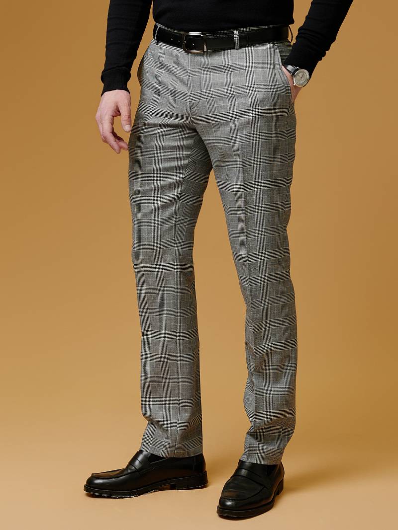 Slim fit (ПРИЛЕГАЮЩИЙ СИЛУЭТ), рекомендуется брать на размер больше. Мужские брюки со стрелками благодаря лаконичному прямому крою без защипов с классической посадкой одинаково гармонично дополнит строгий офисный образ с пиджаком и менее формальный с джемпером или рубашкой. Брюки с боковыми наклонными карманами и одним задними карманом "в рамку". Верхний срез брюк обработан поясом с корсажной лентой и шлевками под ремень. Брюки мужские, классические, нарядные, повседневные, молодежные, casual, для работы в офисе, модные, для мужа, сына, брата, на праздник.