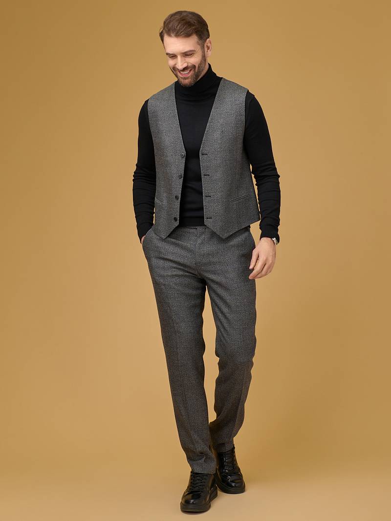 Classic fit (ПОЛУПРИЛЕГАЮЩИЙ СИЛУЭТ). Мужские брюки со стрелками благодаря лаконичному прямому крою без защипов с классической посадкой одинаково гармонично дополнит строгий офисный образ с пиджаком и менее формальный с джемпером или рубашкой. Брюки с боковыми наклонными карманами и одним задними карманом "в рамку". Верхний срез брюк обработан поясом с корсажной лентой и шлевками под ремень. Брюки мужские, классические, нарядные, повседневные, молодежные, casual, для работы в офисе, модные, для мужа, сына, брата, на праздник.