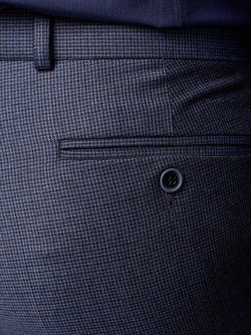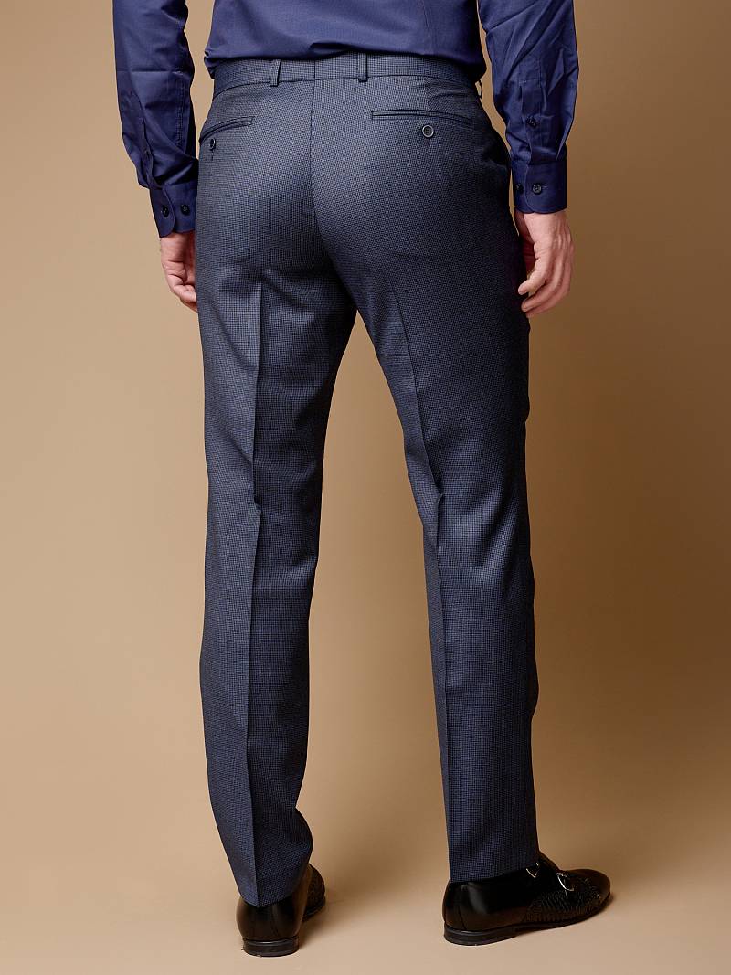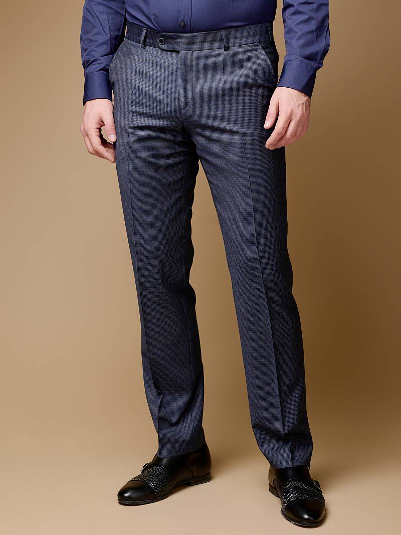 Classic fit (ПОЛУПРИЛЕГАЮЩИЙ СИЛУЭТ). Брюки без защипов, с боковыми наклонными карманами и двумя задними карманами «в рамку». Передние половинки на подкладке. Верхний срез брюк обработан поясом с корсажной лентой и шлевками под ремень. Застежка обработана на тесьму-молнию, с петлей-пуговицей на поясе и усилен металлическим крючком.