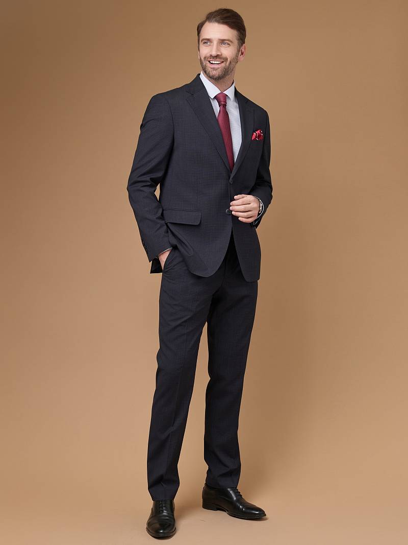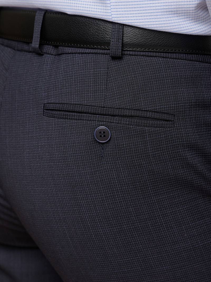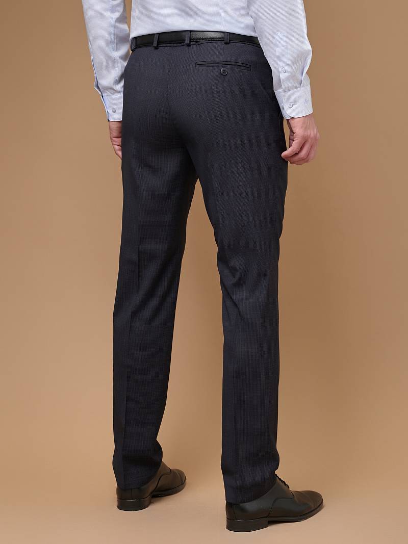 Classic fit (ПОЛУПРИЛЕГАЮЩИЙ СИЛУЭТ). Темно-синие брюки со стрелками благодаря лаконичному прямому крою без защипов с классической посадкой гарантирует универсальность модели в базовом гардеробе. Наличие в составе ткани лайкры обеспечит дополнительный комфорт и удобство. Брюки с боковыми наклонными карманами и одним задними карманом "в рамку". Верхний срез брюк обработан поясом с корсажной лентой и шлевками под ремень. Брюки мужские, классические, нарядные, повседневные, молодежные, casual, для работы в офисе, модные, для мужа, сына, брата, на праздник.