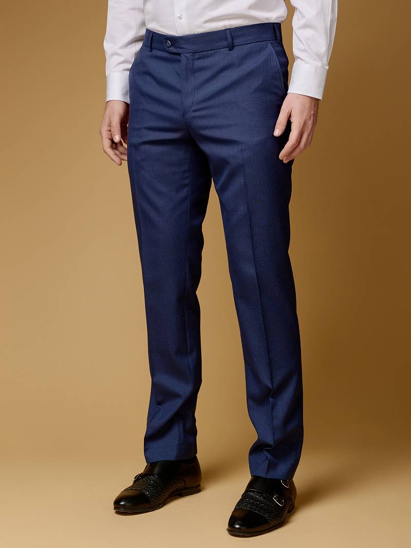 Classic fit (ПОЛУПРИЛЕГАЮЩИЙ СИЛУЭТ). Мужские брюки со стрелками благодаря лаконичному прямому крою без защипов с классической посадкой одинаково гармонично дополнит строгий офисный образ с пиджаком и менее формальный с джемпером или рубашкой. Брюки с боковыми наклонными карманами и одним задними карманом "в рамку". Верхний срез брюк обработан поясом с корсажной лентой и шлевками под ремень. Брюки мужские, классические, нарядные, повседневные, молодежные, casual, для работы в офисе, модные, для мужа, сына, брата, на праздник.