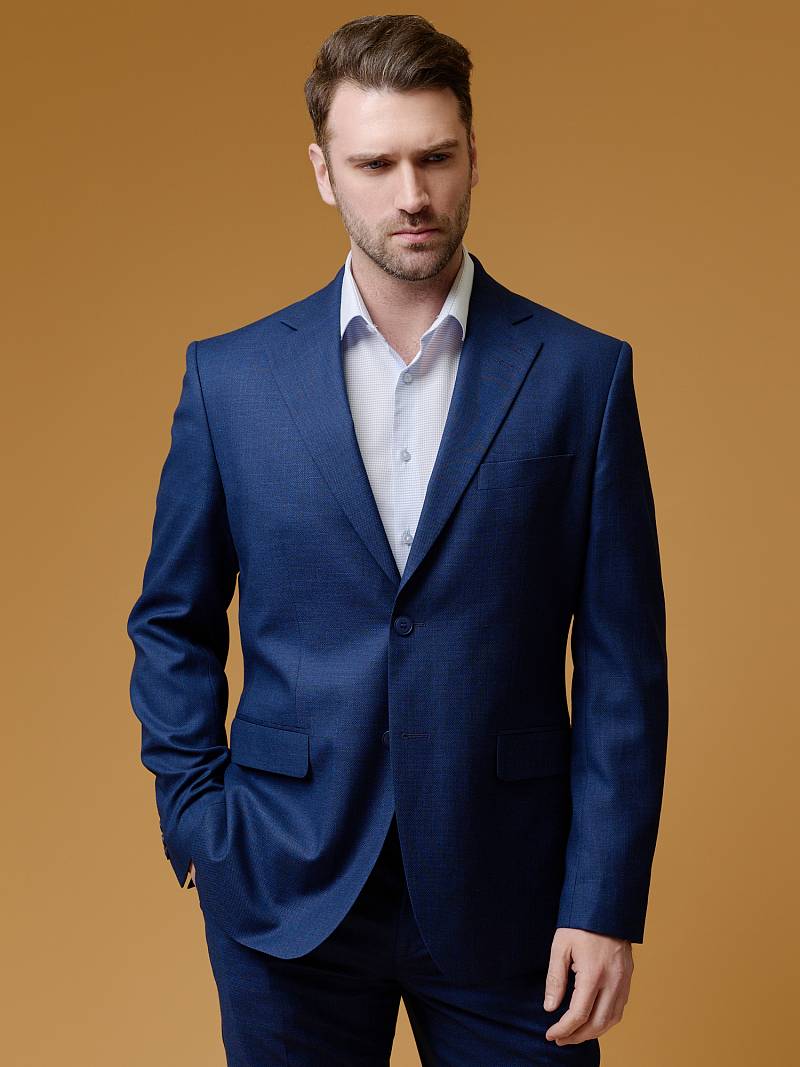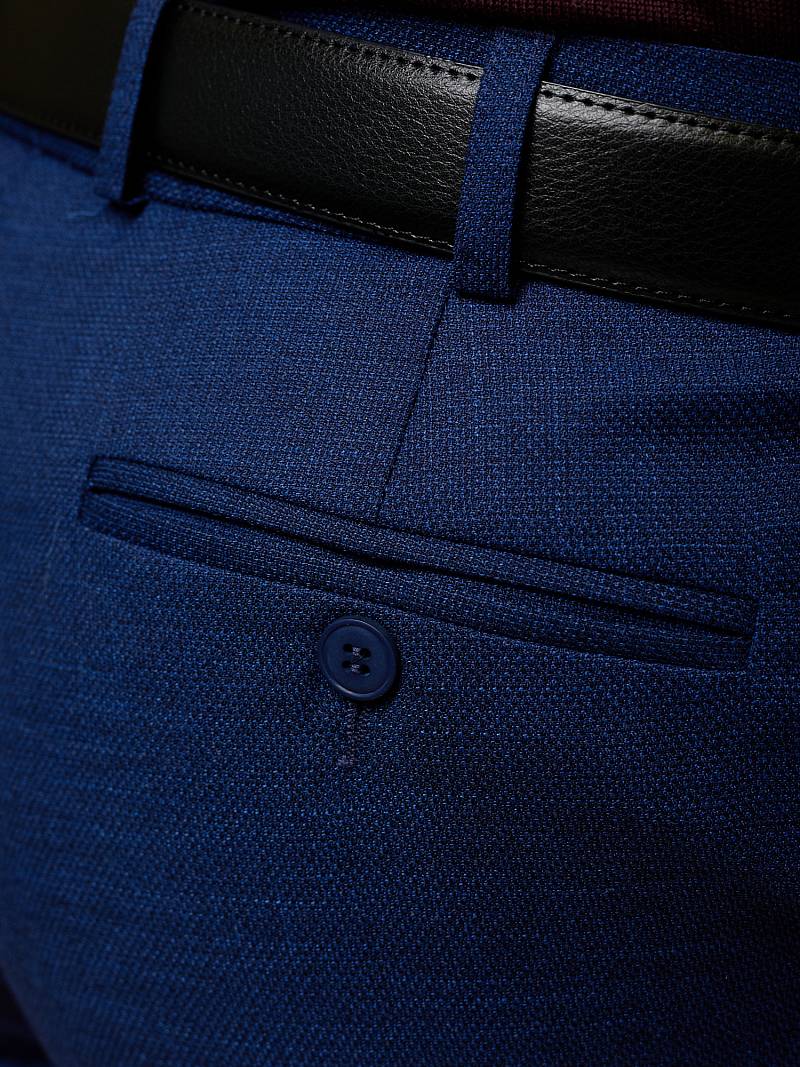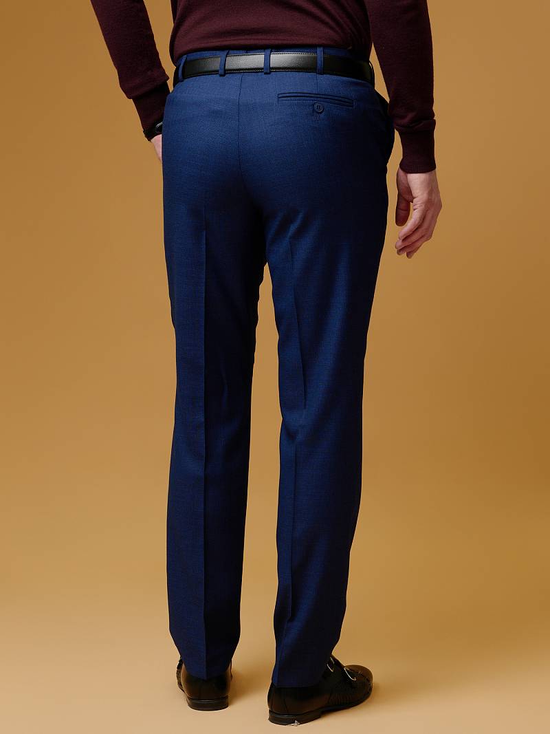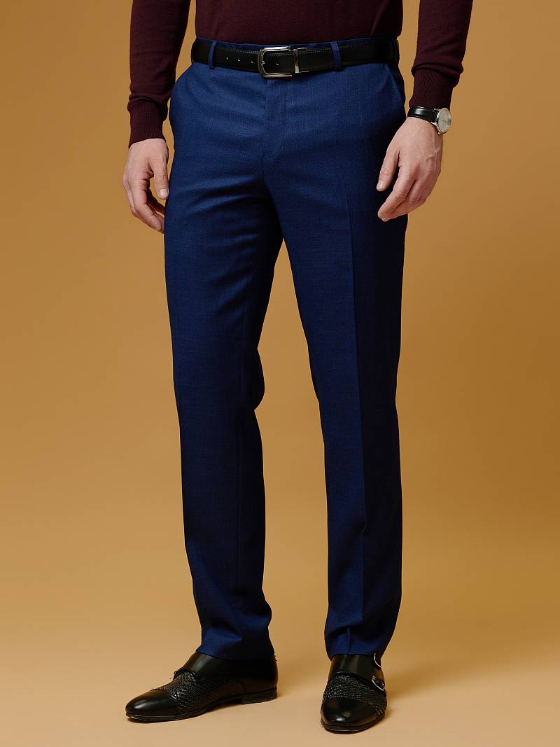 Classic fit (ПОЛУПРИЛЕГАЮЩИЙ СИЛУЭТ). Брюки без защипов, с боковыми наклонными карманами и двумя задними карманами «в рамку». Передние половинки на подкладке. Верхний срез брюк обработан поясом с корсажной лентой и шлевками под ремень. Застежка обработана на тесьму-молнию, с петлей-пуговицей на поясе и усилен металлическим крючком.