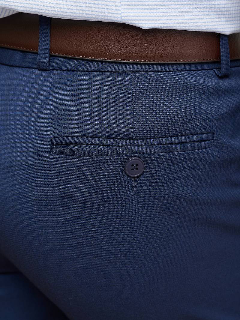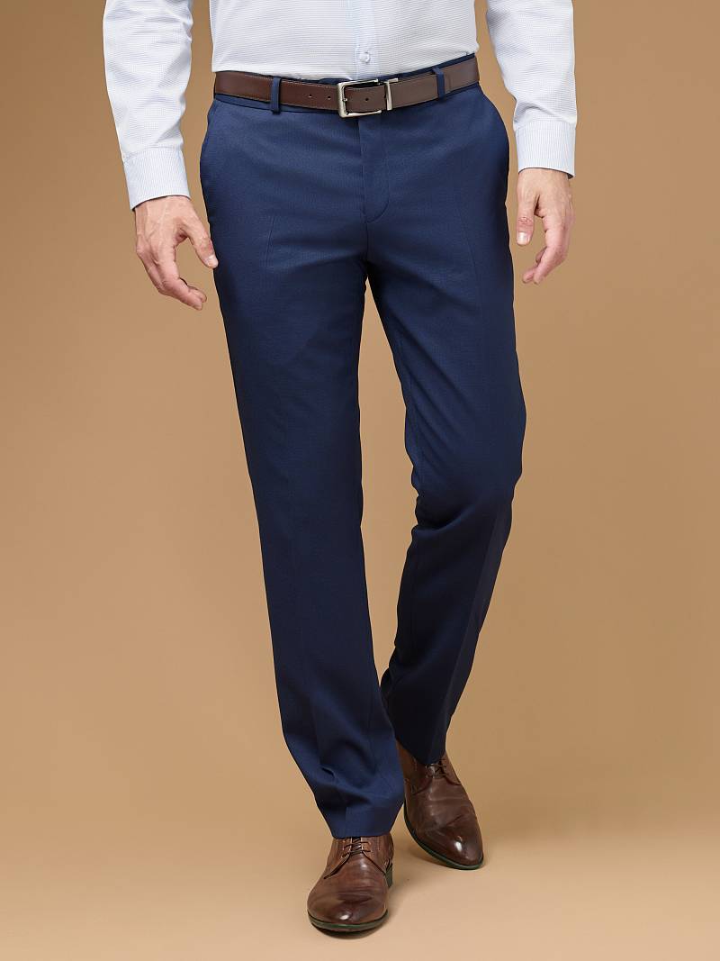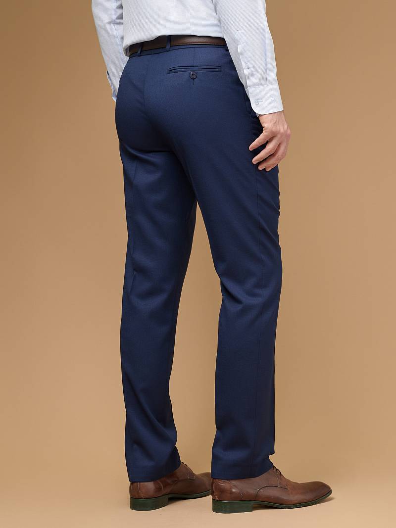 Slim fit (ПРИЛЕГАЮЩИЙ СИЛУЭТ), рекомендуется брать на размер больше. Темно-синие зауженные брюки с низкой посадкой, без защипов одинаково гармонично дополнит строгий офисный образ с пиджаком и менее формальный с джемпером или рубашкой. Брюки с боковыми наклонными карманами и одним задними карманом "в рамку". Верхний срез брюк обработан поясом с корсажной лентой и шлевками под ремень. Брюки мужские, классические, нарядные, повседневные, молодежные, casual, для работы в офисе, модные, для мужа, сына, брата, на праздник.