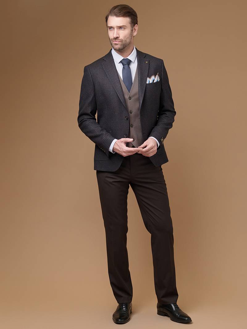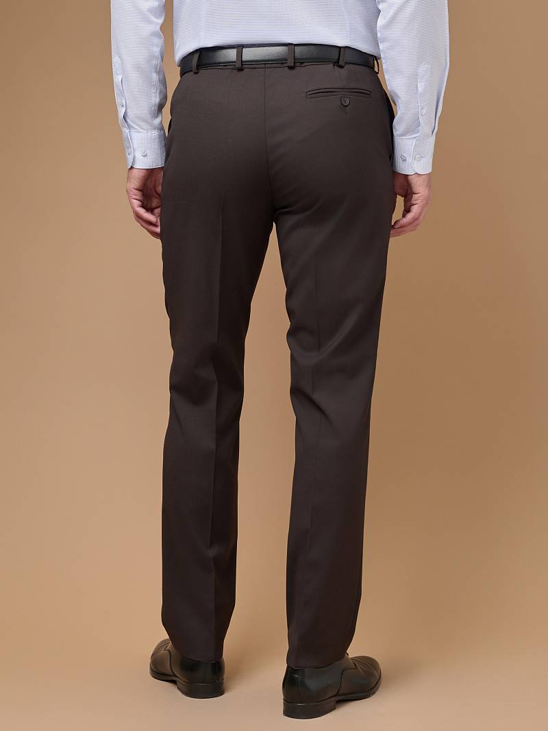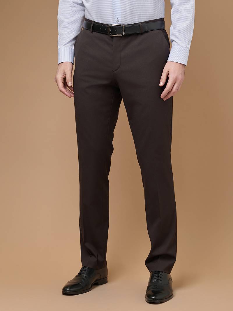 Classic fit (ПОЛУПРИЛЕГАЮЩИЙ СИЛУЭТ). Темно-коричневые брюки со стрелками благодаря лаконичному прямому крою без защипов с классической посадкой одинаково гармонично дополнит строгий офисный образ с пиджаком и менее формальный с джемпером или рубашкой. Наличие в составе ткани лайкры обеспечит дополнительный комфорт и удобство. Брюки с боковыми наклонными карманами и одним задними карманом "в рамку". Верхний срез брюк обработан поясом с корсажной лентой и шлевками под ремень.