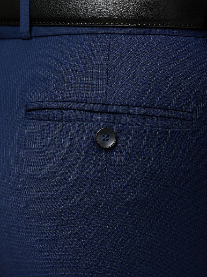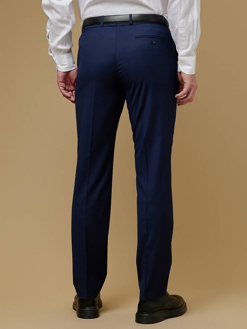 Slim fit (ПРИЛЕГАЮЩИЙ СИЛУЭТ), рекомендуется брать на размер больше. Темно-синие зауженные брюки с низкой посадкой, благодаря лаконичному крою без защипов, гармонично впишутся в базовый гардероб. Наличие в составе ткани лайкры обеспечит дополнительный комфорт и удобство. Брюки с боковыми наклонными карманами и одним задними карманом "в рамку". Верхний срез брюк обработан поясом с корсажной лентой и шлевками под ремень. Брюки мужские, классические, нарядные, повседневные, молодежные, casual, для работы в офисе, модные, для мужа, сына, брата, на праздник.