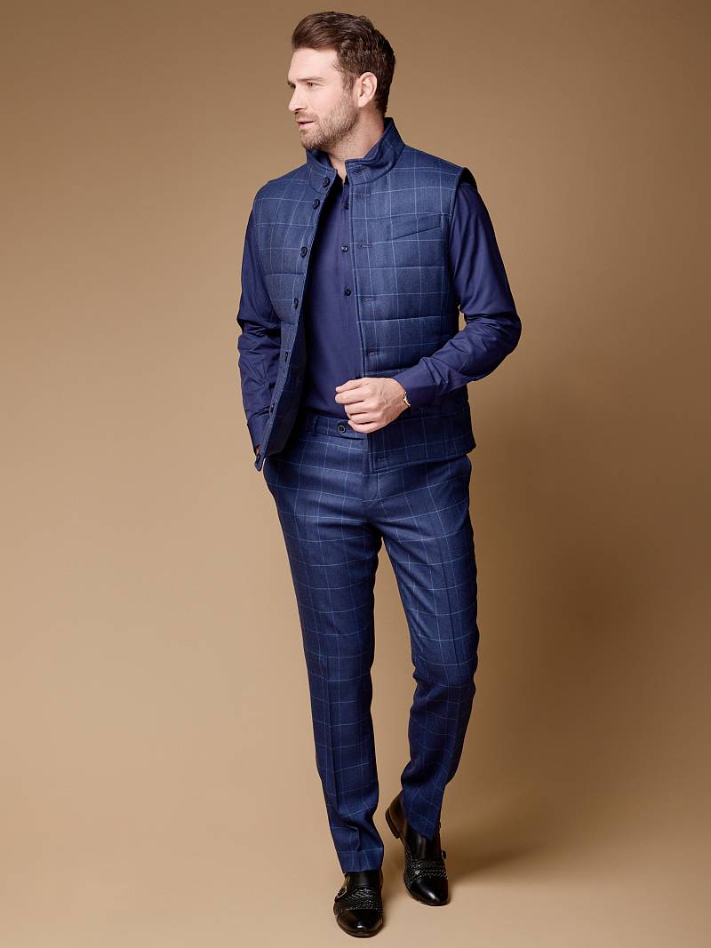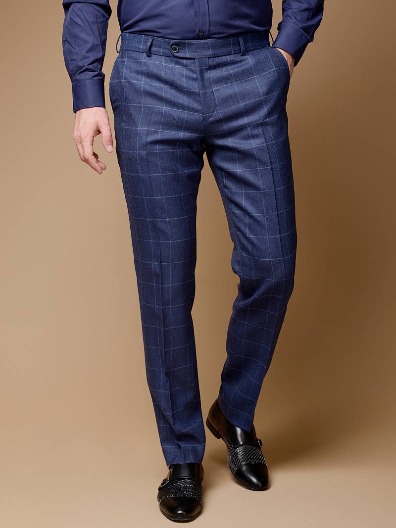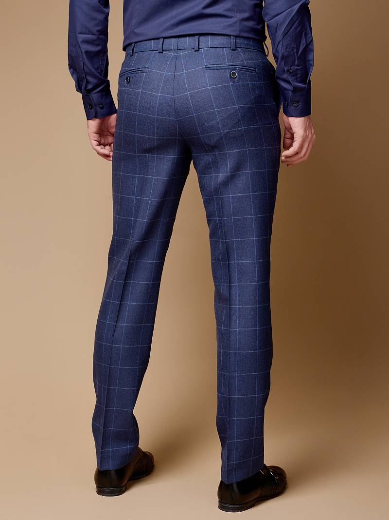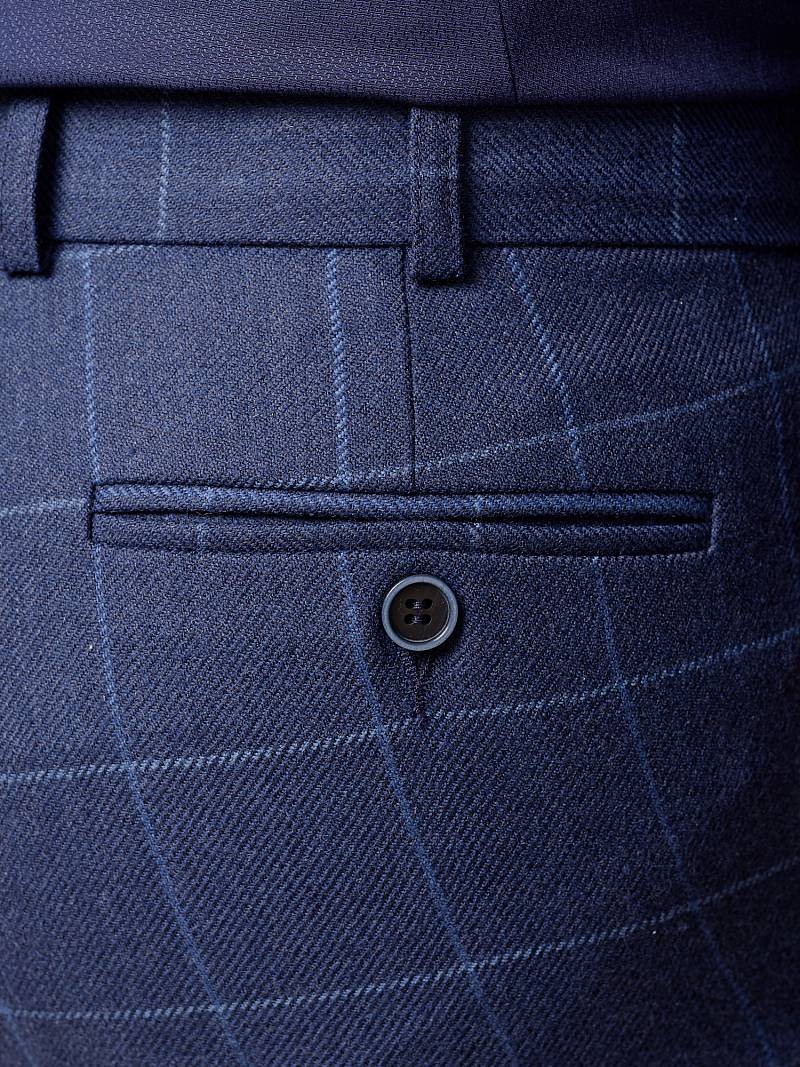 Classic fit (ПОЛУПРИЛЕГАЮЩИЙ СИЛУЭТ). Брюки без защипов, с боковыми наклонными карманами и двумя задними карманами «в рамку». Передние половинки на подкладке. Верхний срез брюк обработан поясом с корсажной лентой и шлевками под ремень. Застежка обработана на тесьму-молнию, с петлей-пуговицей на поясе и усилен металлическим крючком.