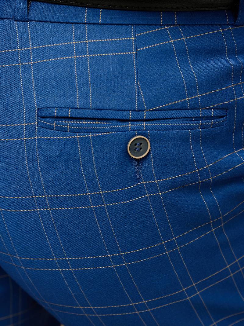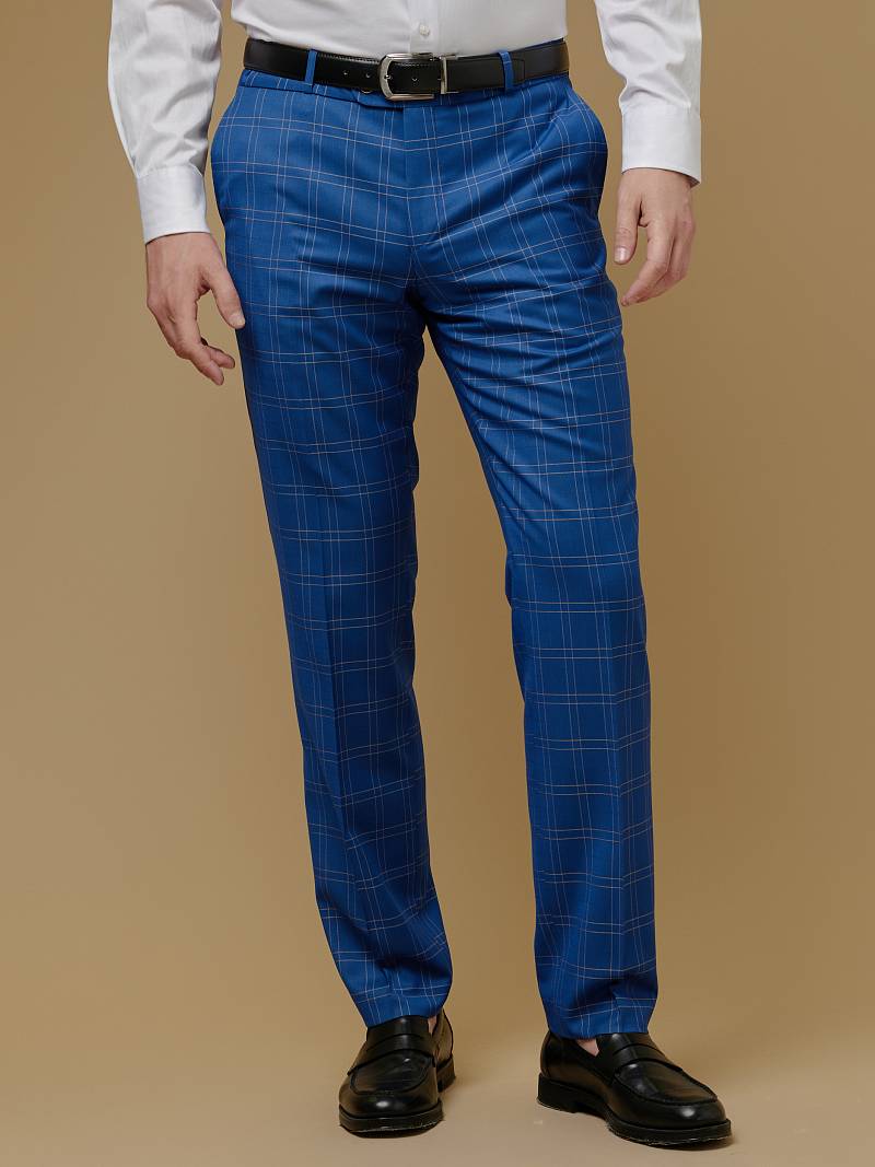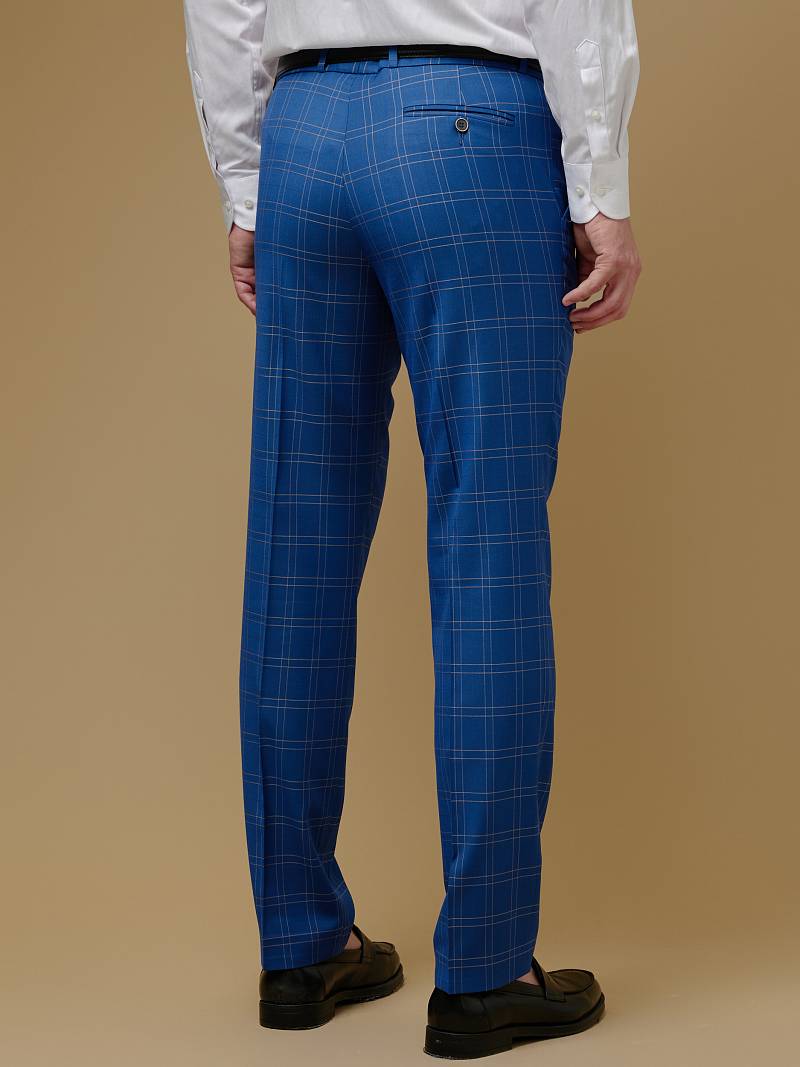 Slim fit (ПРИЛЕГАЮЩИЙ СИЛУЭТ), рекомендуется брать на размер больше. Синие зауженные брюки с низкой посадкой, без защипов, с выраженным клетчатым рисунком одинаково гармонично дополнит строгий офисный образ с пиджаком и менее формальный с джемпером или рубашкой. Брюки с боковыми наклонными карманами и одним задними карманом "в рамку". Верхний срез брюк обработан поясом с корсажной лентой и шлевками под ремень. Брюки мужские, классические, нарядные, повседневные, молодежные, casual, для работы в офисе, модные, для мужа, сына, брата, на праздник.