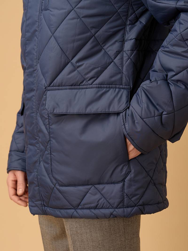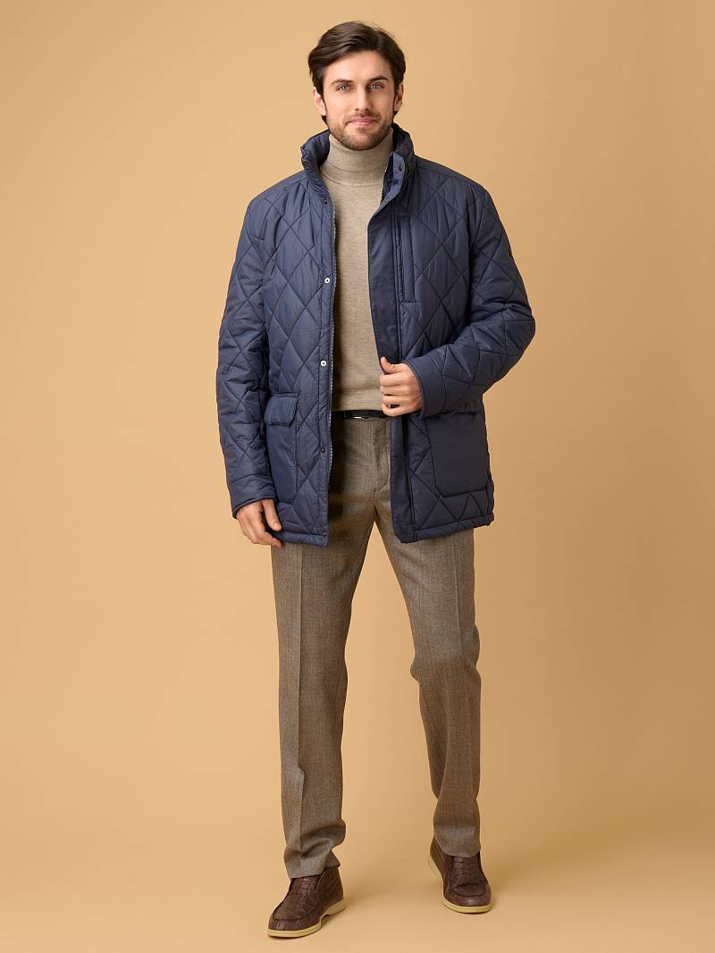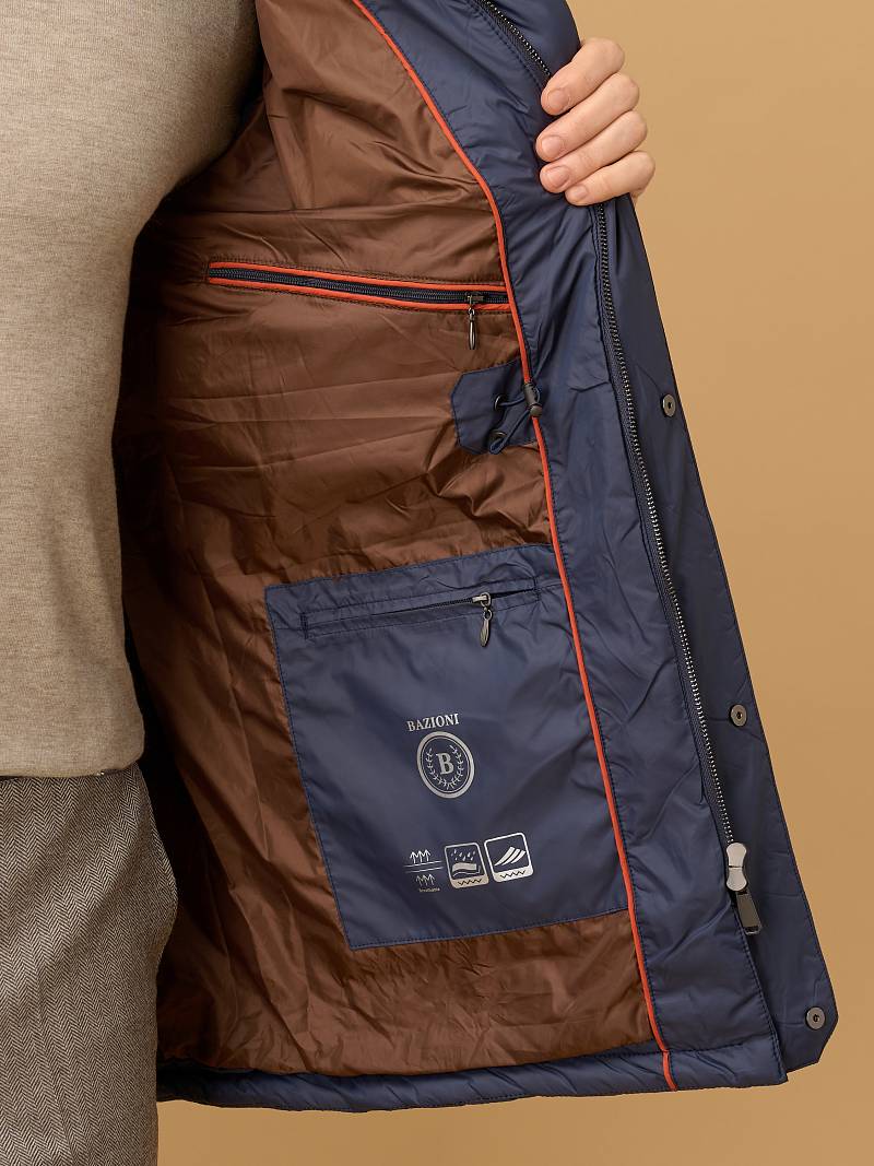 Представляем практичную и стильную куртку, сочетающую надёжную теплоизоляцию, продуманную эргономику и современный дизайн. Модель рассчитана на прохладную осень, обеспечивает защиту от ветра и умеренных холодов. Ромбовидная стежка удерживает равномерное распределение утеплителя. Воротник - стойка плотно облегает шею и защищает от ветра. Водоотталкивающая плащевая ткань и интегрированный в воротник капюшон на кулиске защитят от дождя. Куртка застегивается на центральную молнию с двумя фирменными брендированными бегунками и ветрозащитную планку на кнопках. Два крупных многофункциональных накладных кармана с боковым входом на магнитной кнопке и верхним входом с клапаном на двух кнопках. Дополнительный нагрудный вертикальный карман-листочка на молнии обеспечит надежное хранение важных мелочей. Удлиненный силуэт позволяет надевать куртку на пиджак, либо классический костюм, которые вы можете выбрать из представленного ассортимента нашего магазина. Внутри куртка оформлена подкладкой с двумя карманами на молнии и контрастным кантом, а расположенная на уровне талии регулируемая кулиска обеспечивает дополнительную защиту от ветра. Дизайнеры марки BAZIONI тщательно выбирают и используют ткани и прикладные материалы только от передовых производителей. Завершат Ваш стильный образ трикотаж и актуальные брюки из нашей осенне-зимней коллекции, широко представленной в магазине.
