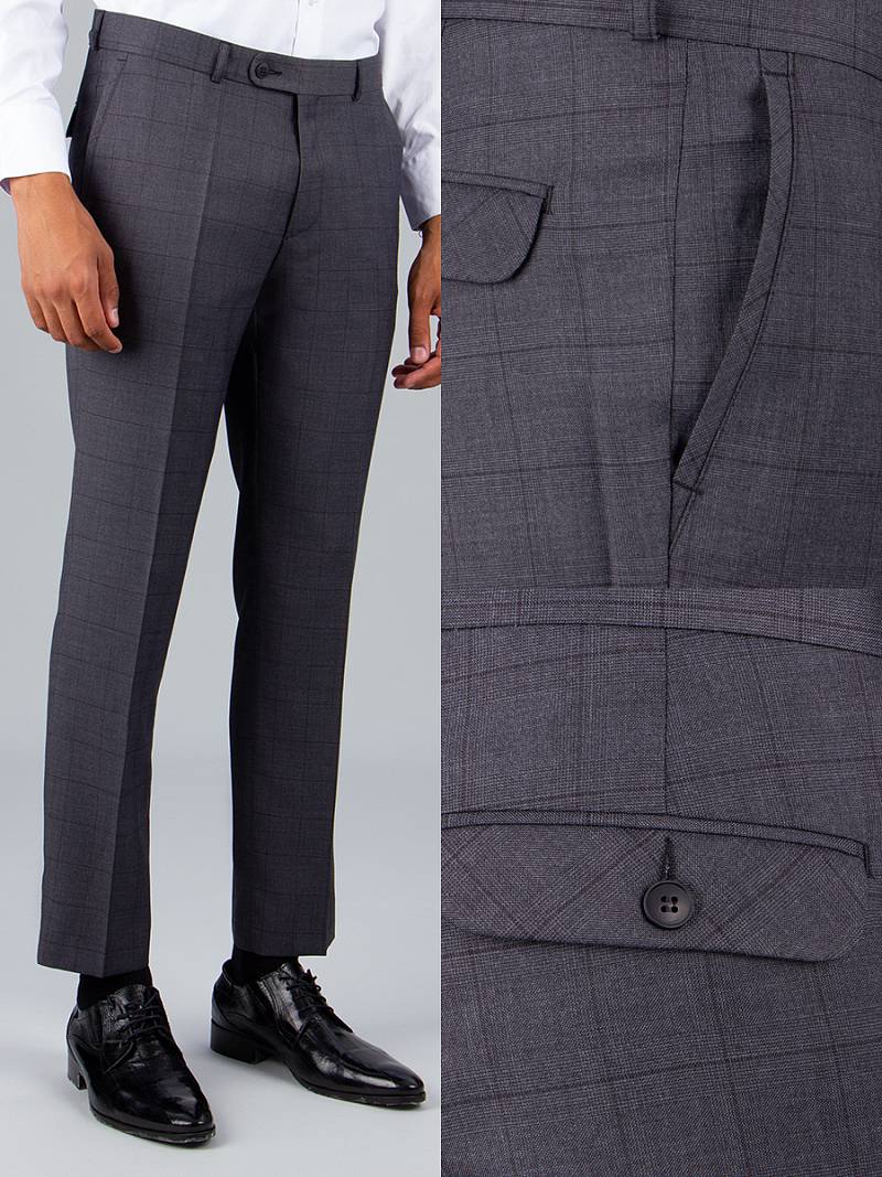 Slim fit. На задних половинках брюк прорезные карманы с клапаном застегивающиеся на петлю и пуговицу.