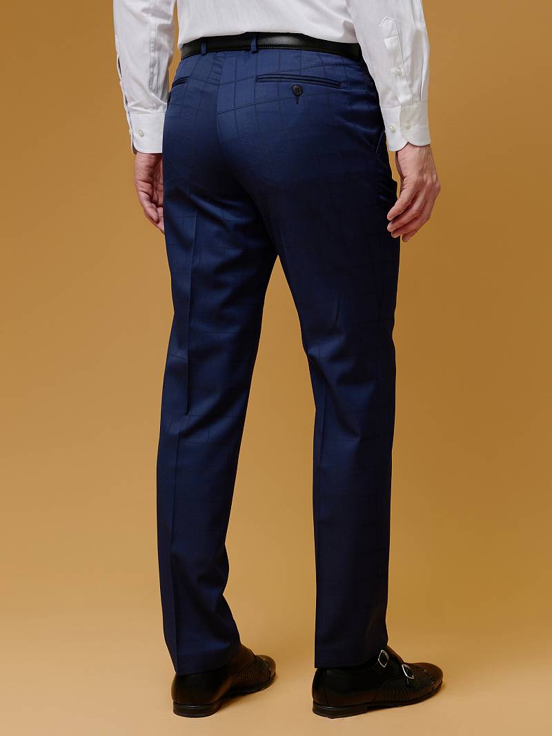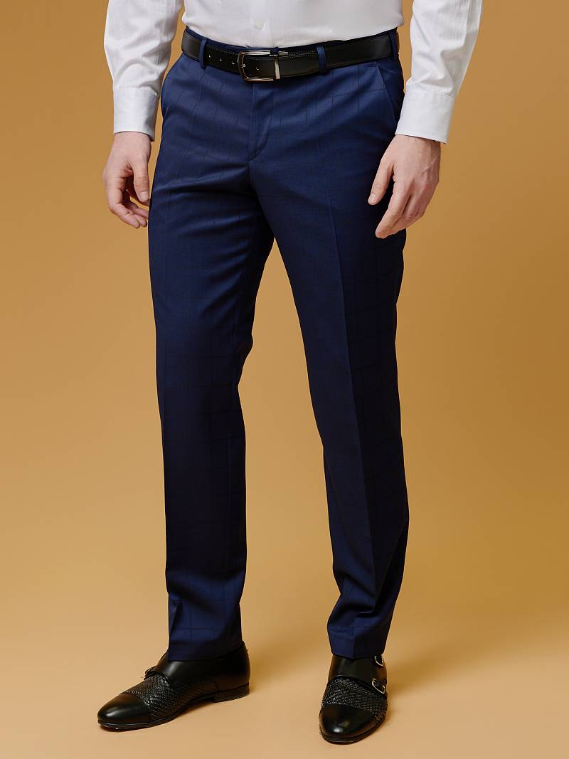 Classic fit (ПОЛУПРИЛЕГАЮЩИЙ СИЛУЭТ). Брюки без защипов, с боковыми наклонными карманами и двумя задними карманами «в рамку». Передние половинки на подкладке. Верхний срез брюк обработан поясом с корсажной лентой и шлевками под ремень. Застежка обработана на тесьму-молнию, с петлей-пуговицей на поясе и усилен металлическим крючком.